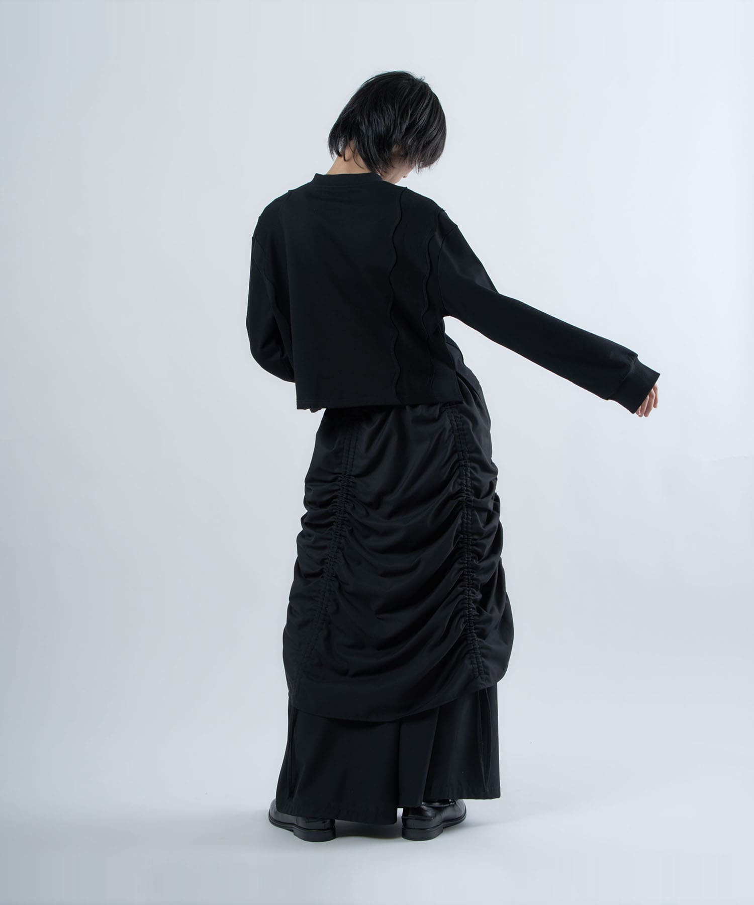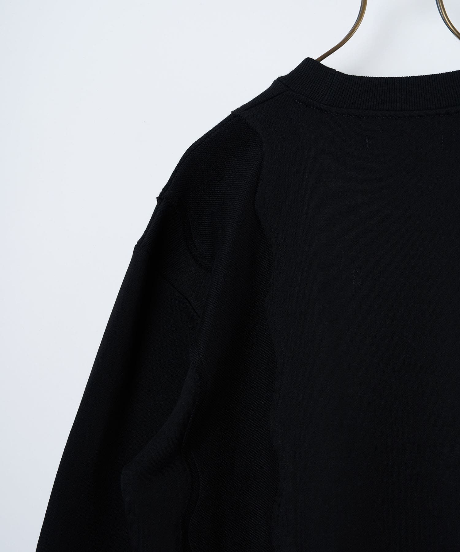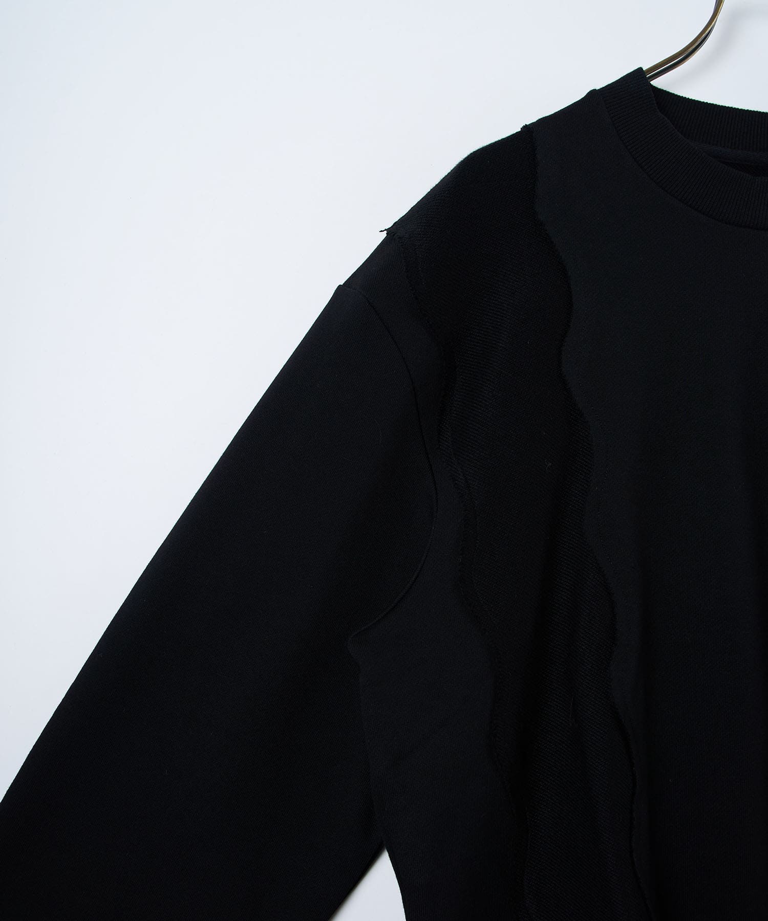 肌触りの良い100%コットン素材を使用したアイビーライン スウィッチングプルオーバー。アイテム名のアイビーラインはツル植物から着想を得ており、身頃を植物が伝っているイメージを切り替えのラインにて表現しています。NOTでは珍しいコンパクトなサイズ感で着心地の良いアイテムに仕上げています。