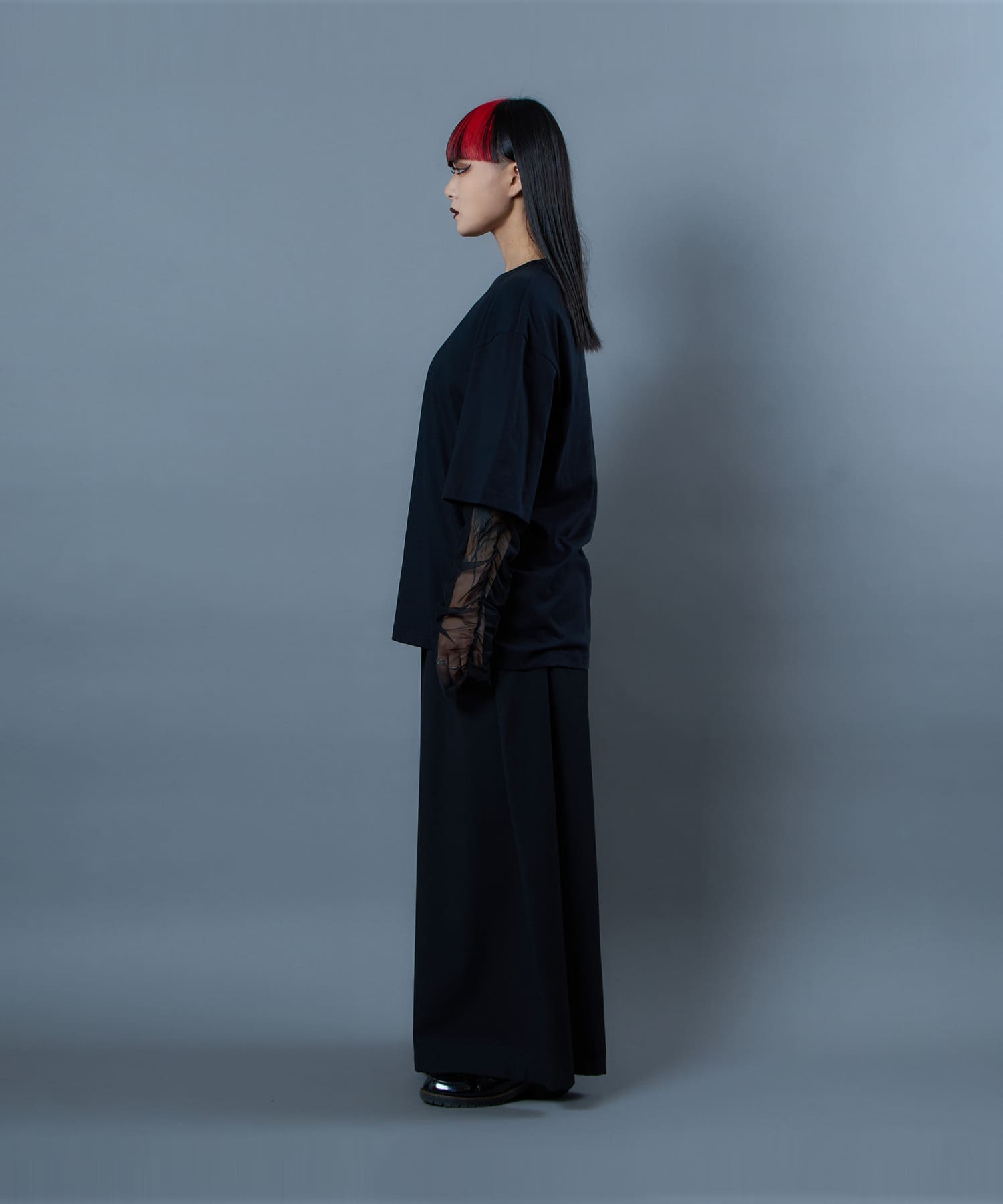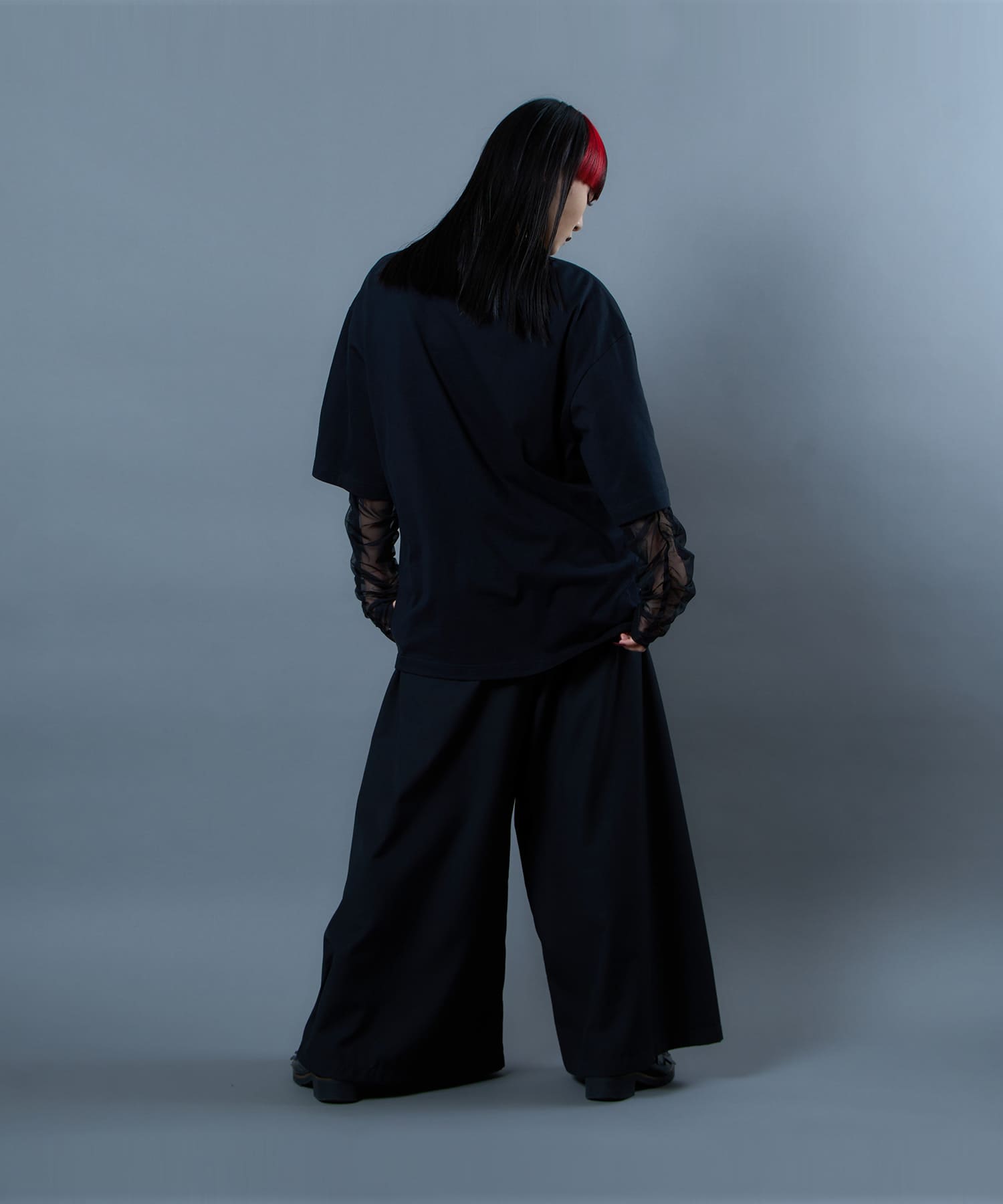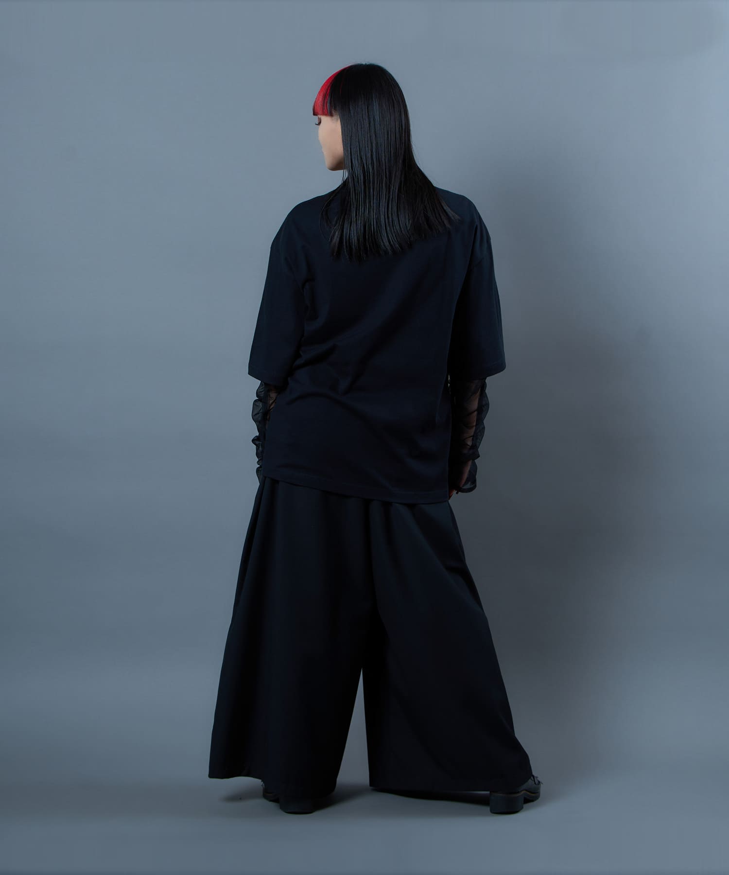 ゆったりとしたサイズ感と柔らかく肌触りの良い素材を使用した蝶々藤TEE。コットン100%の天然素材を使用しておりイージーケアなアイテムとなっております。藤と蝶をモチーフに仕上げられたグラフィックは、儚げな美を表現しつつも、どこか奇妙さを感じられる仕上がりです。裾に施された大判プリントが目を引く一枚で、単体でもレイヤードでもお楽しみいただけるアイテムとなっております。