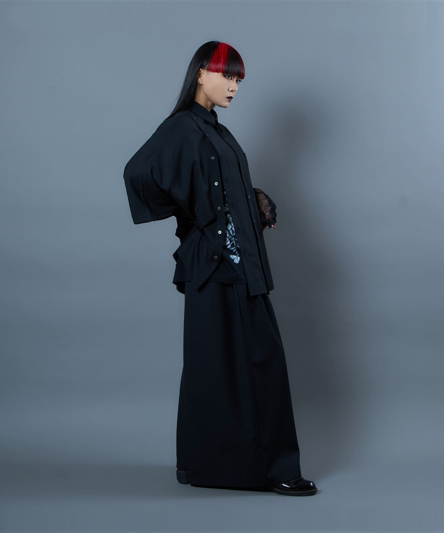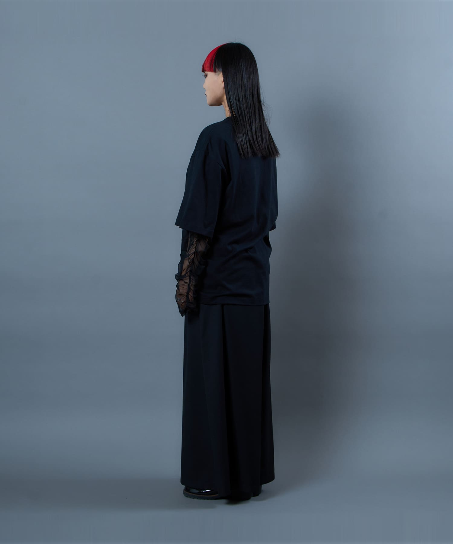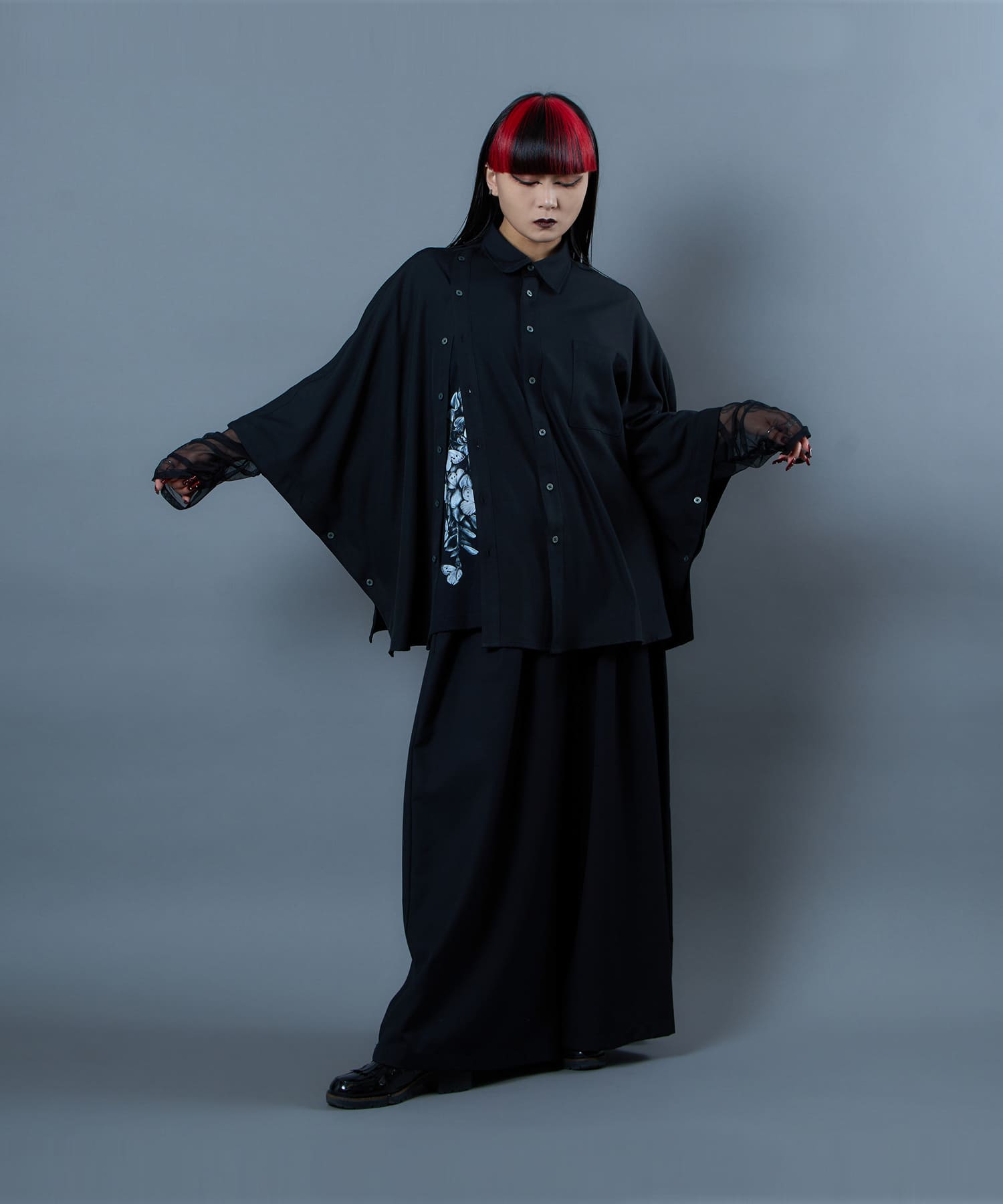 The Butterfly Wisteria Tee is generously sized and made of soft and comfortable material, and is an easy-care item made of 100% natural cotton. The graphic motif of wisteria and butterflies expresses ephemeral beauty, but at the same time, it has a sense of strangeness. The large print on the hem of this eye-catching piece can be worn alone or layered.