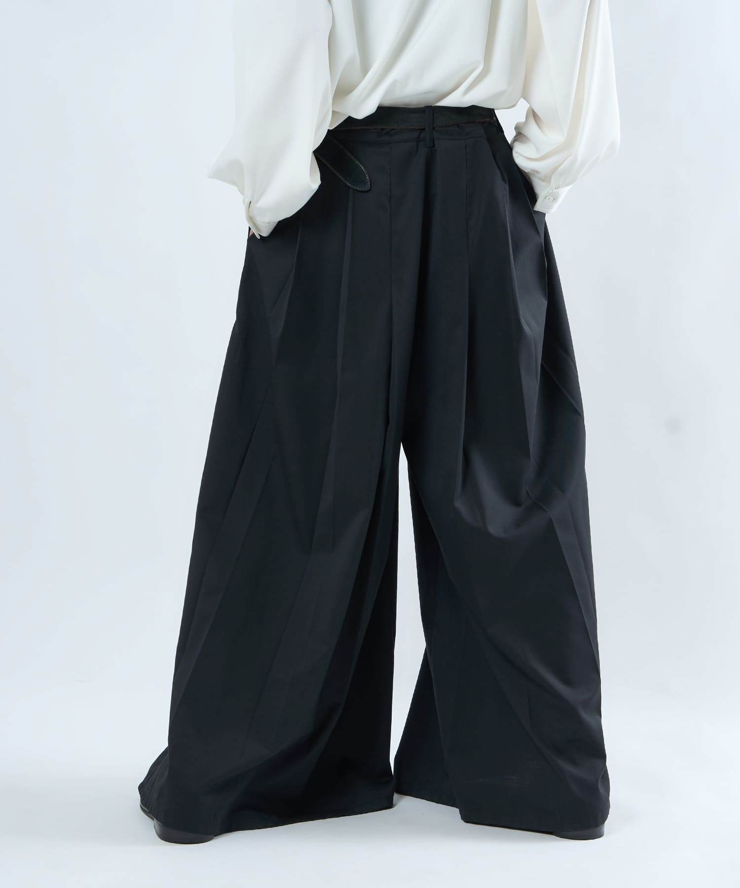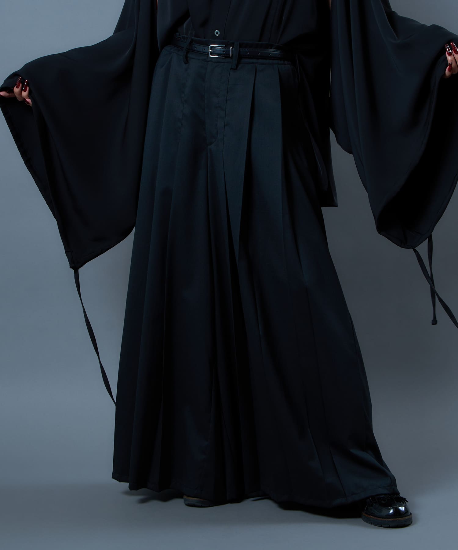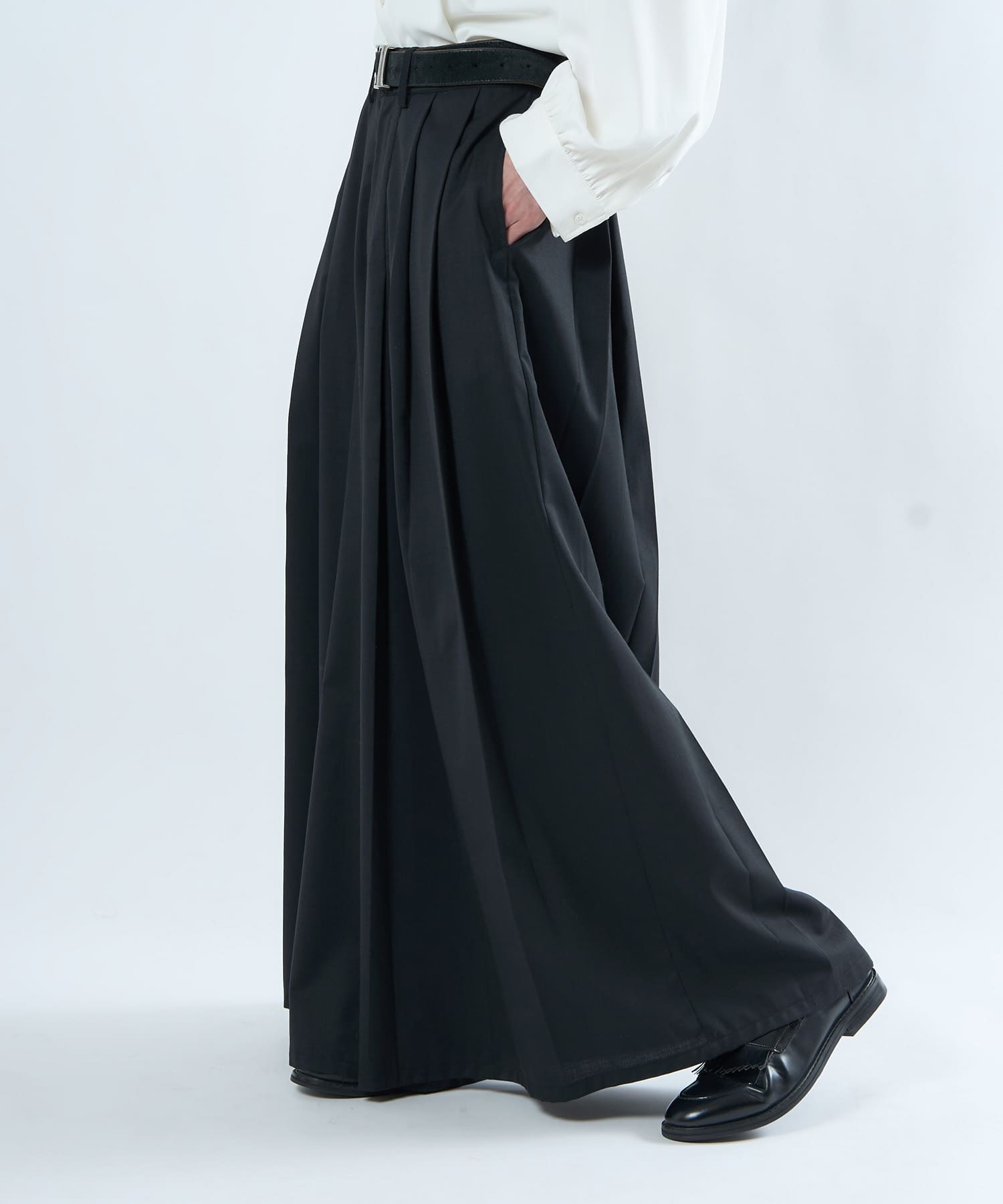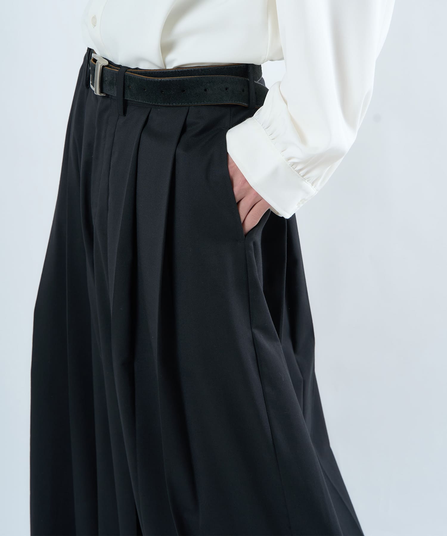 ポリエステル×ウールの上質な生地を使用したタックプリーツハカマパンツ。