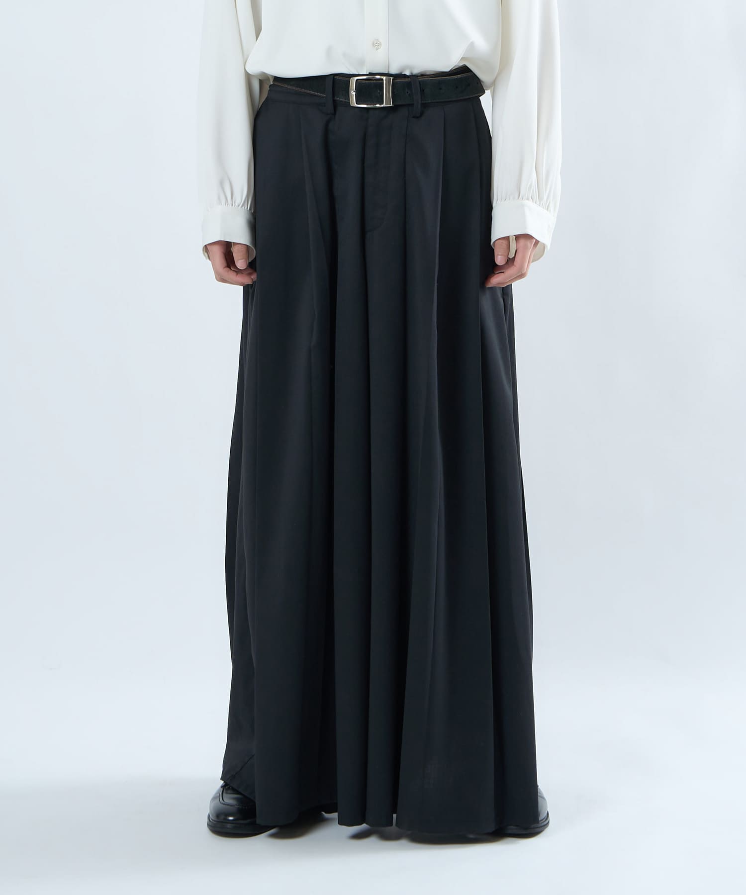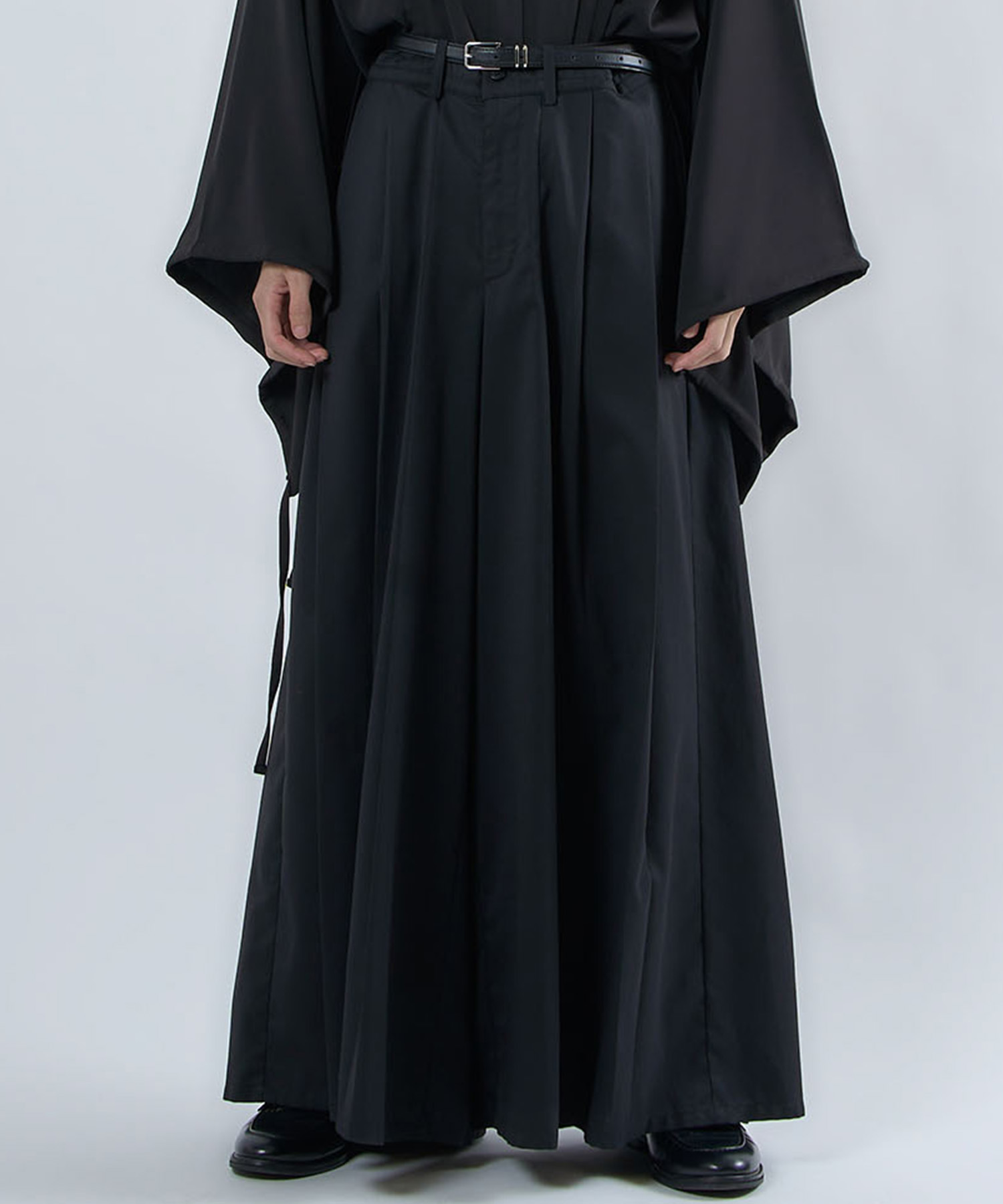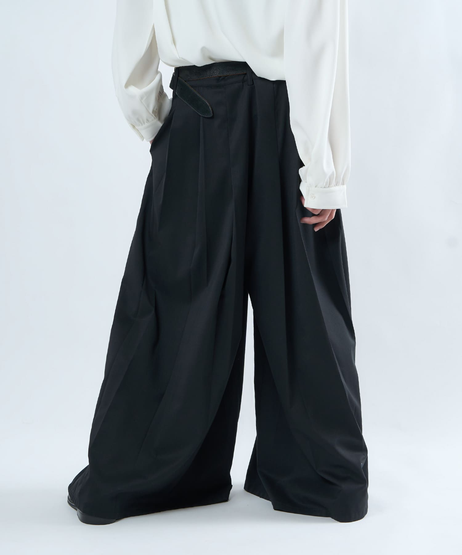 ポリエステル×ウールの上質な生地を使用したタックプリーツハカマパンツ。