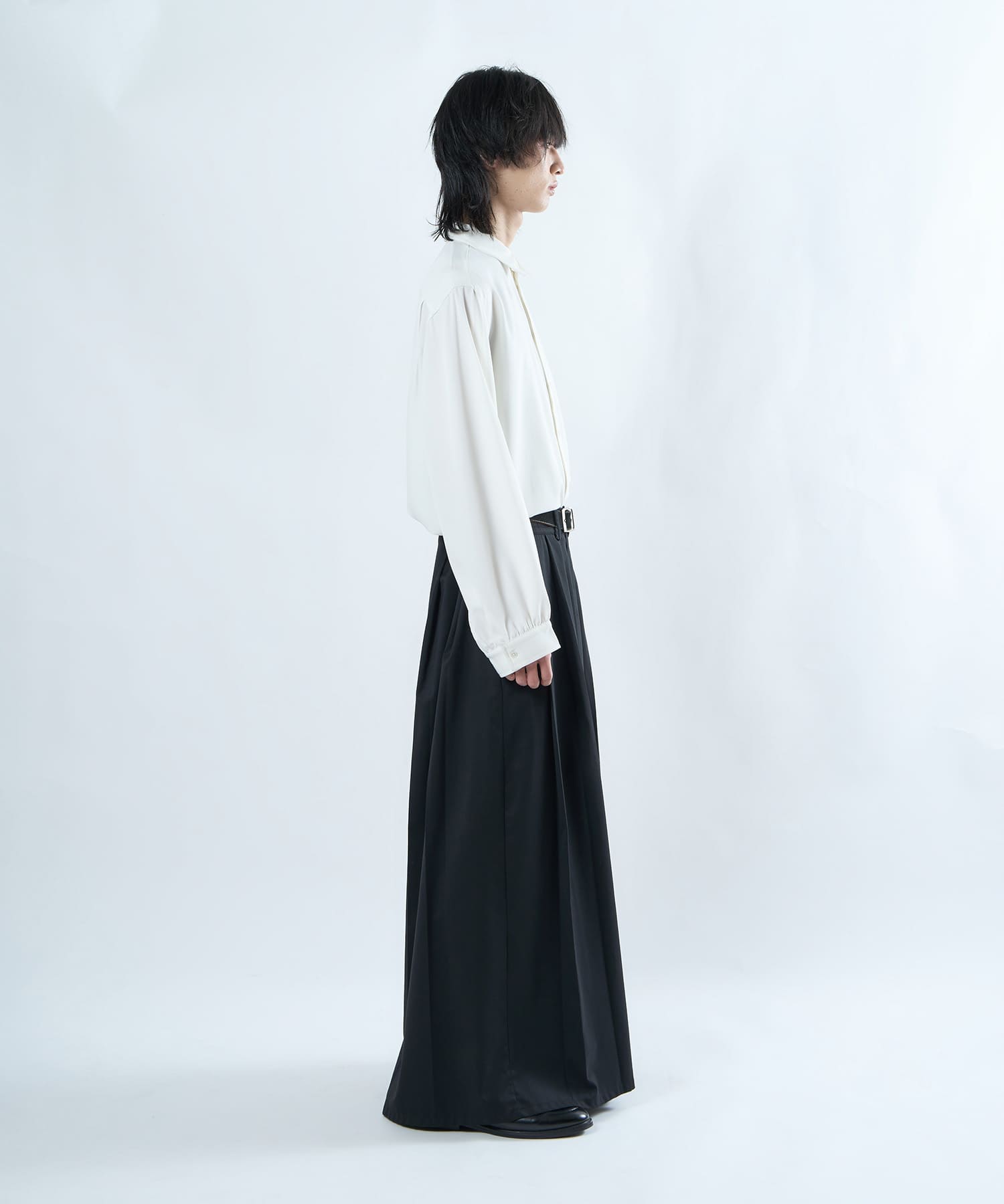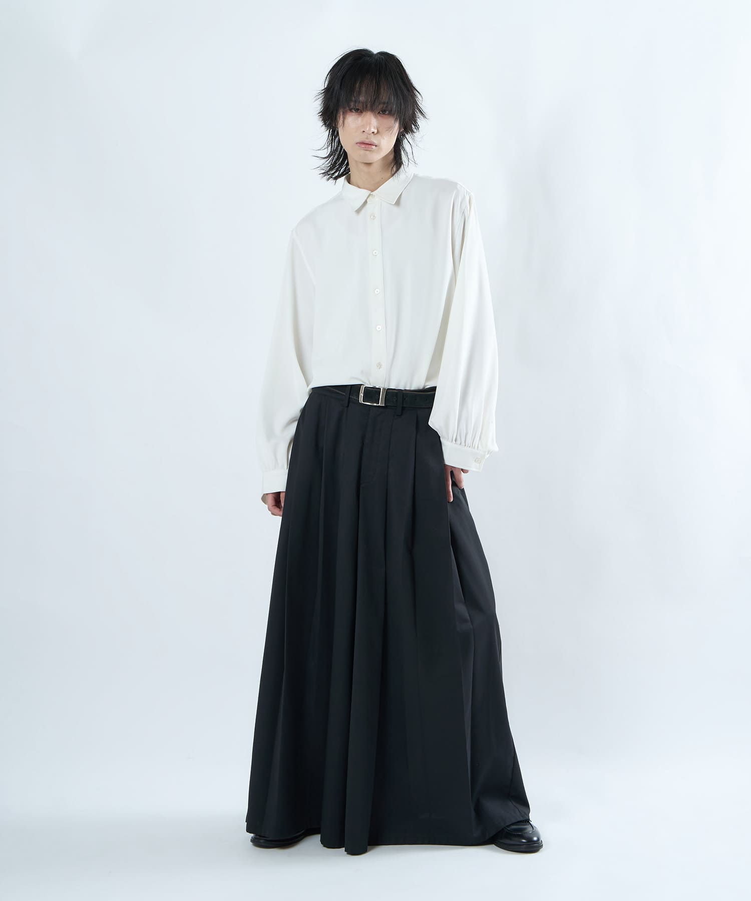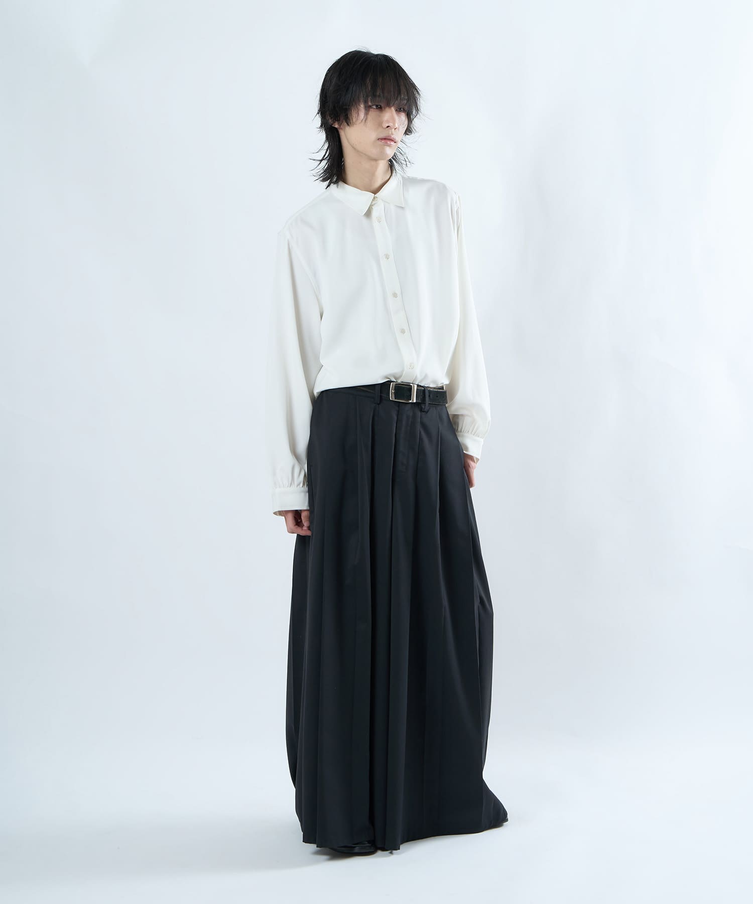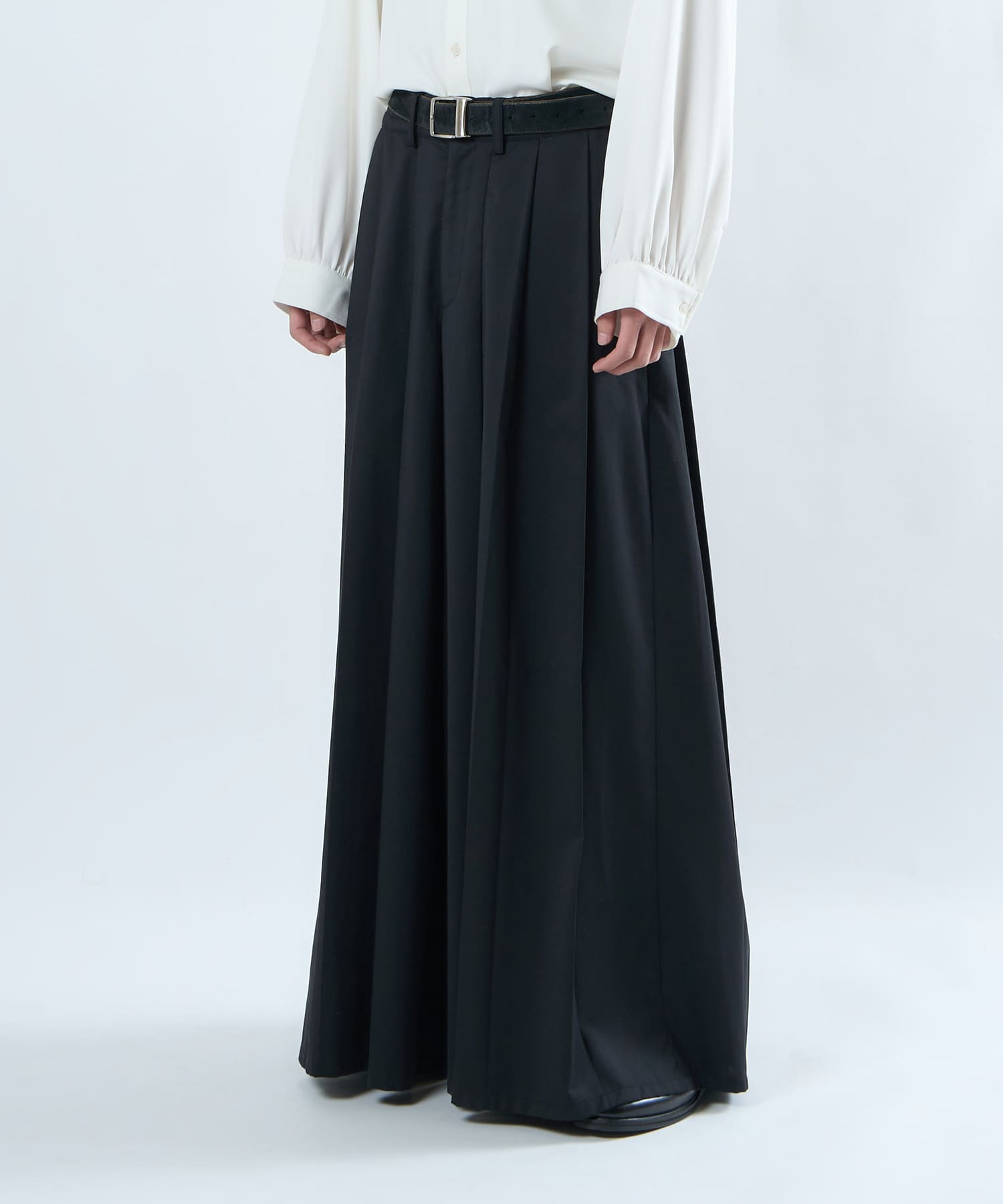 ポリエステル×ウールの上質な生地を使用したタックプリーツハカマパンツ。