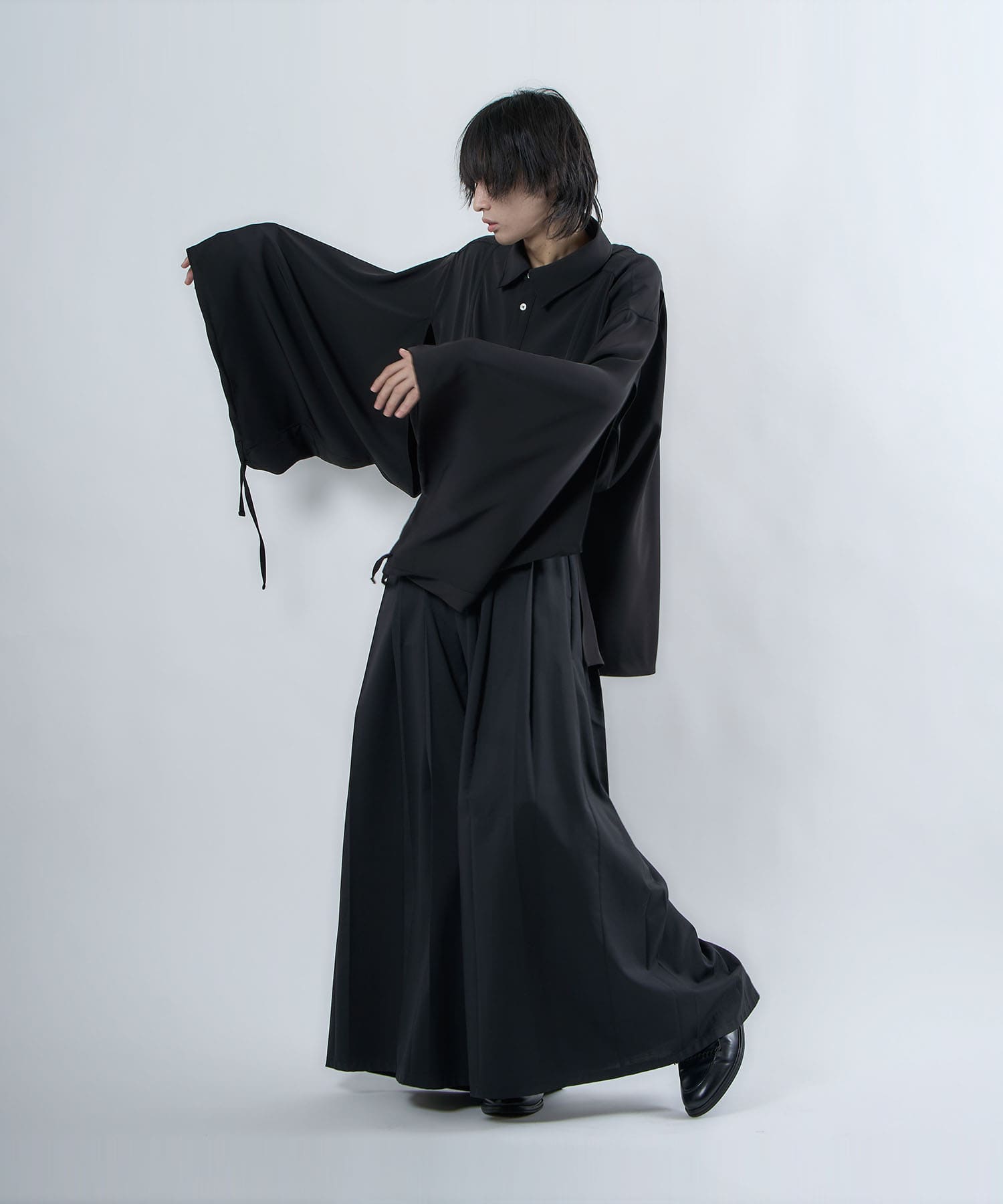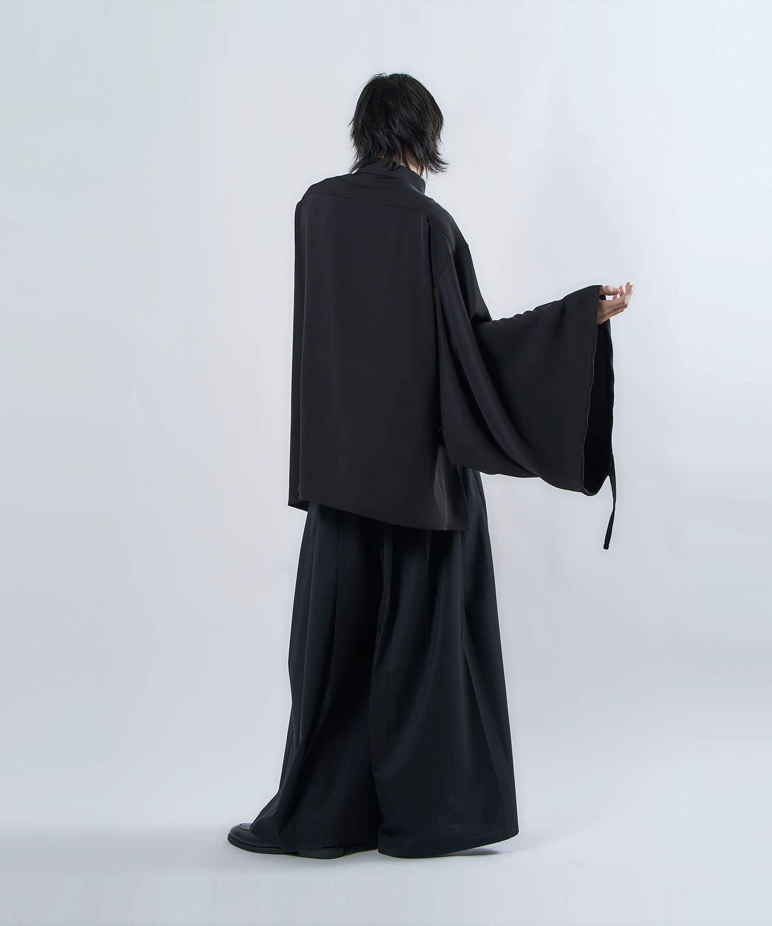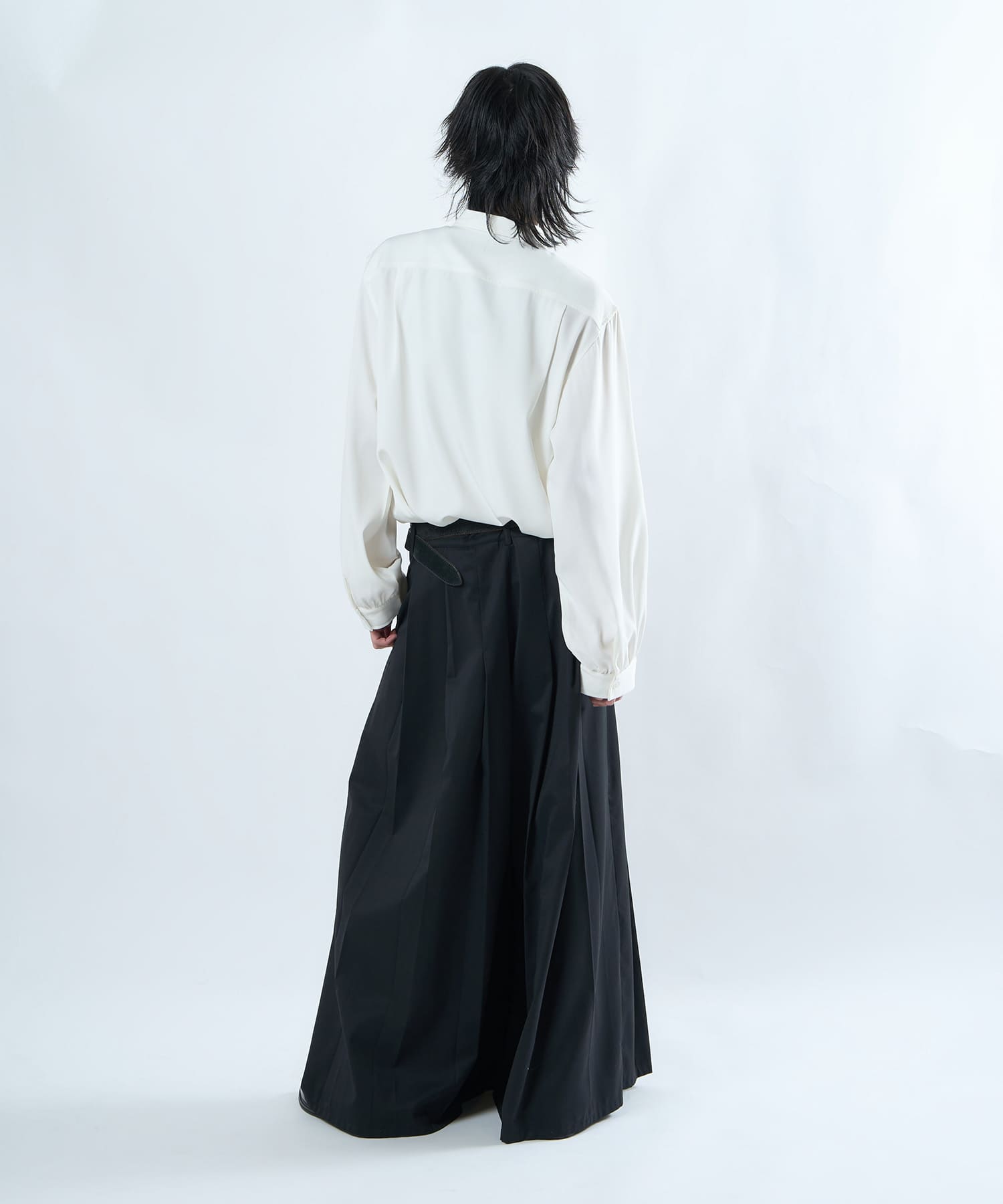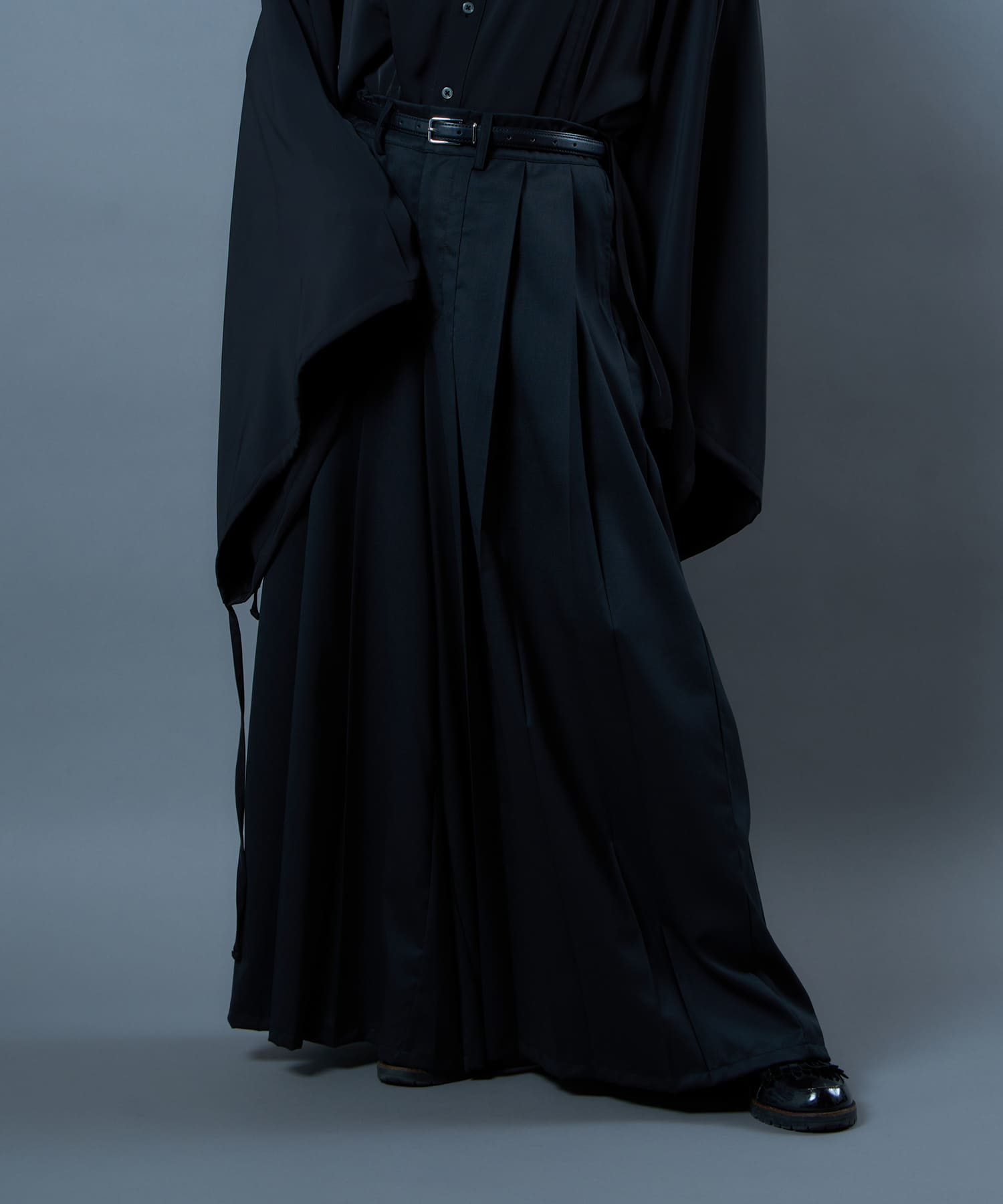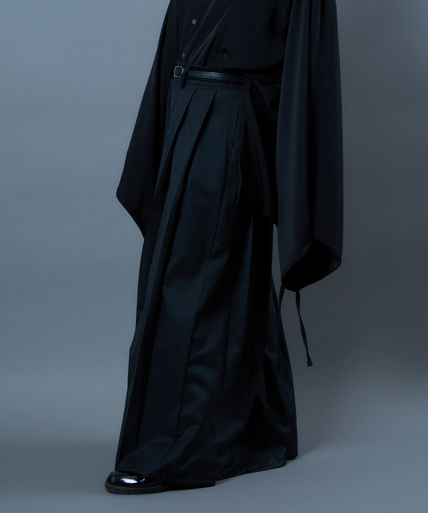 Tuck detailing at the front, back, and sides creates dynamic movement and a strong silhouette.Compared to our standard Hakama pants, this piece leans more toward the traditional style while still offering versatile styling options.