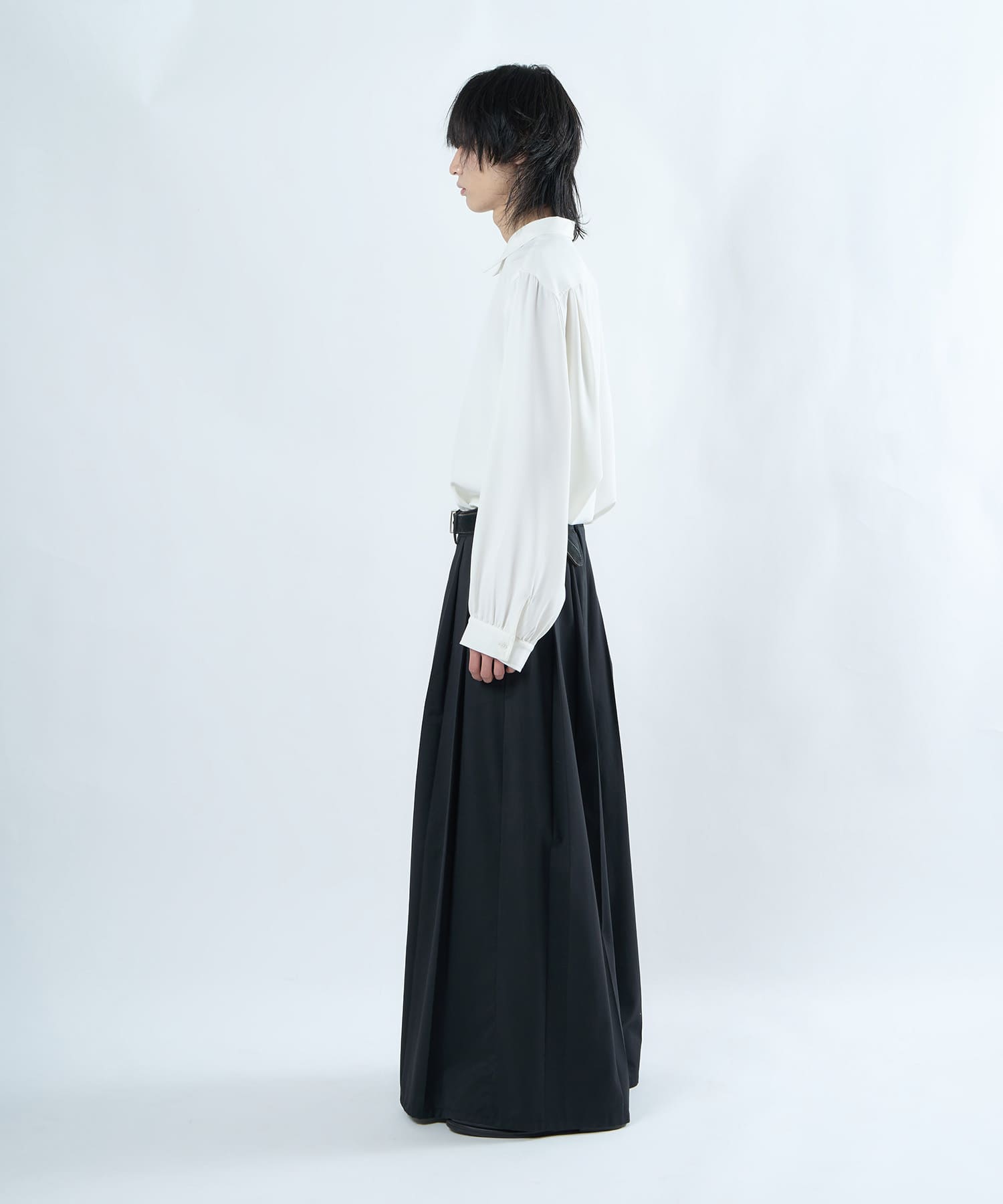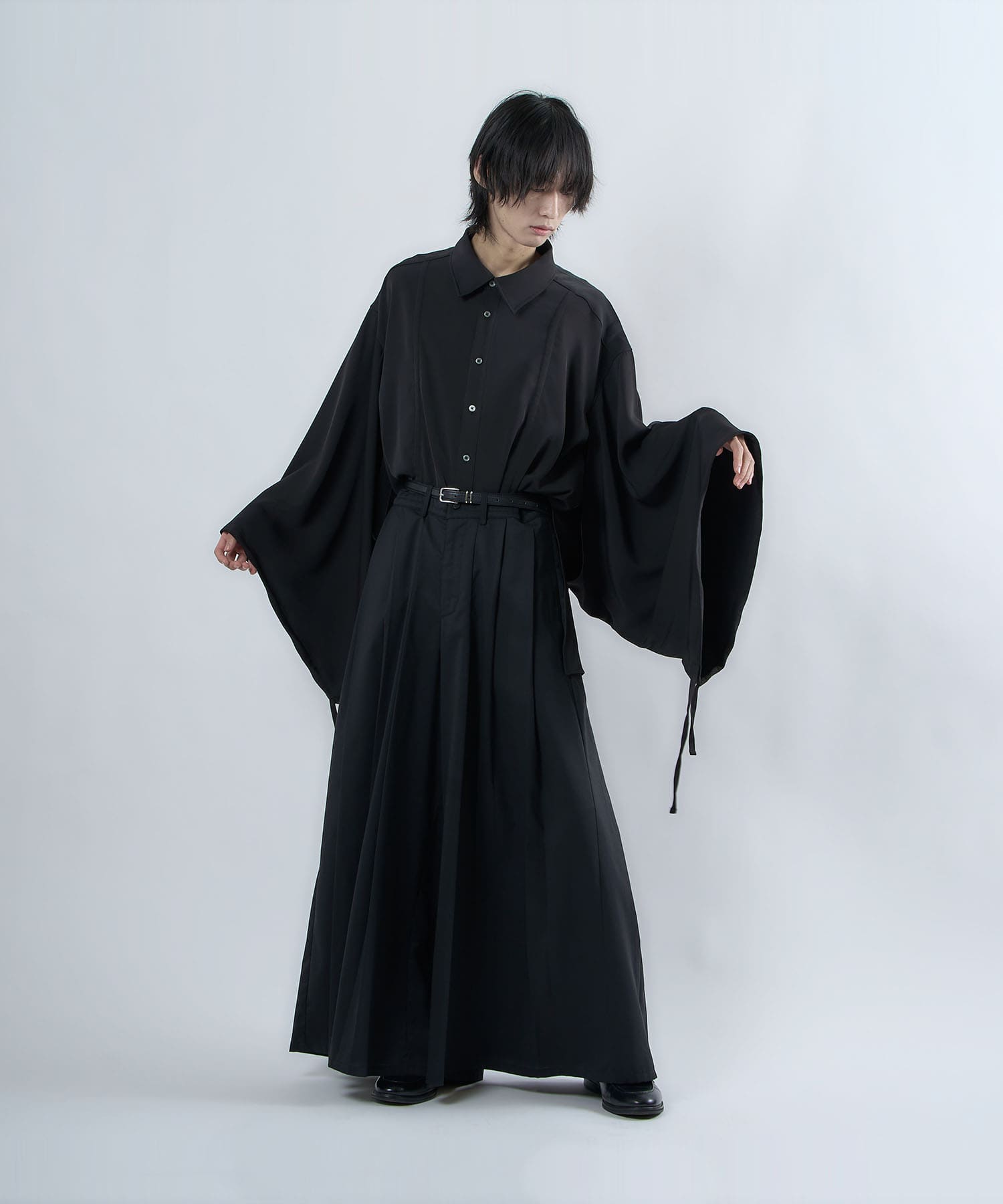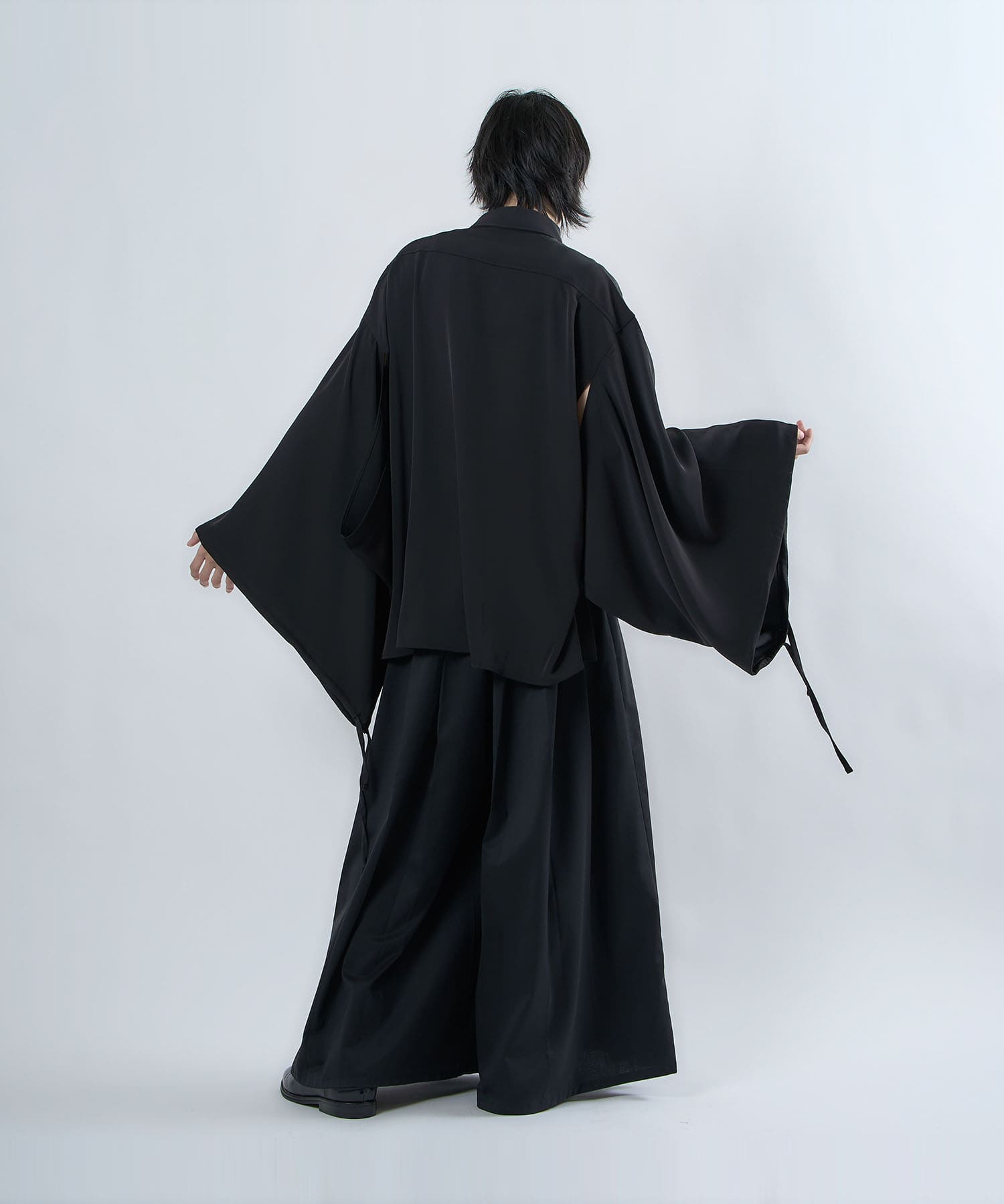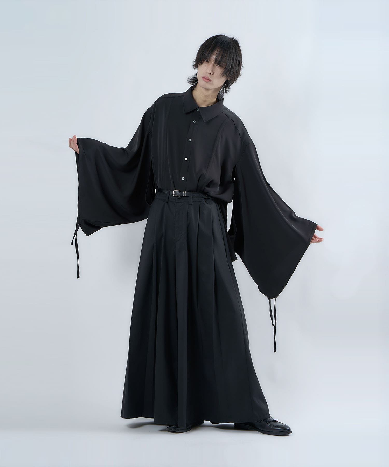 Tuck detailing at the front, back, and sides creates dynamic movement and a strong silhouette.Compared to our standard Hakama pants, this piece leans more toward the traditional style while still offering versatile styling options.