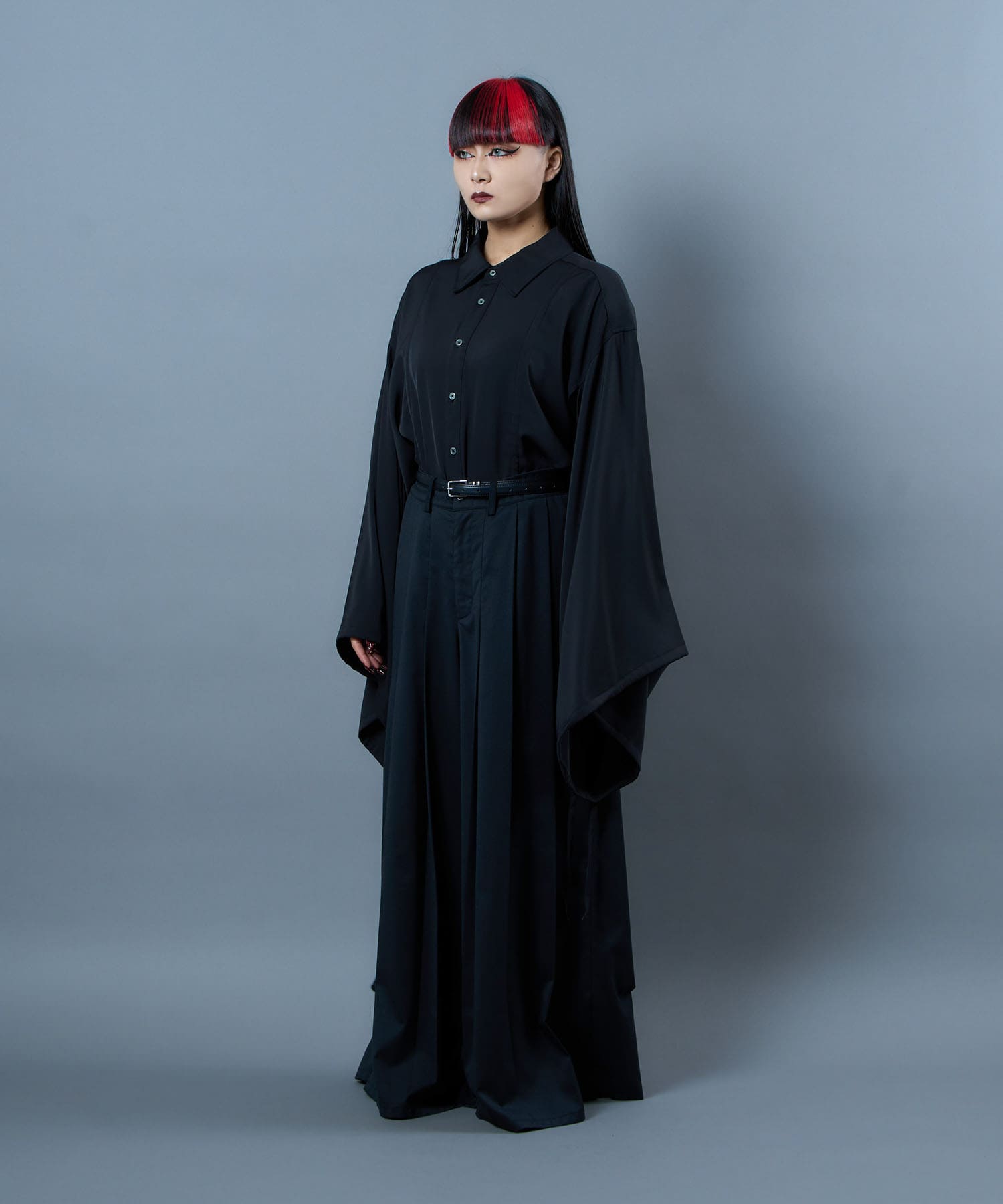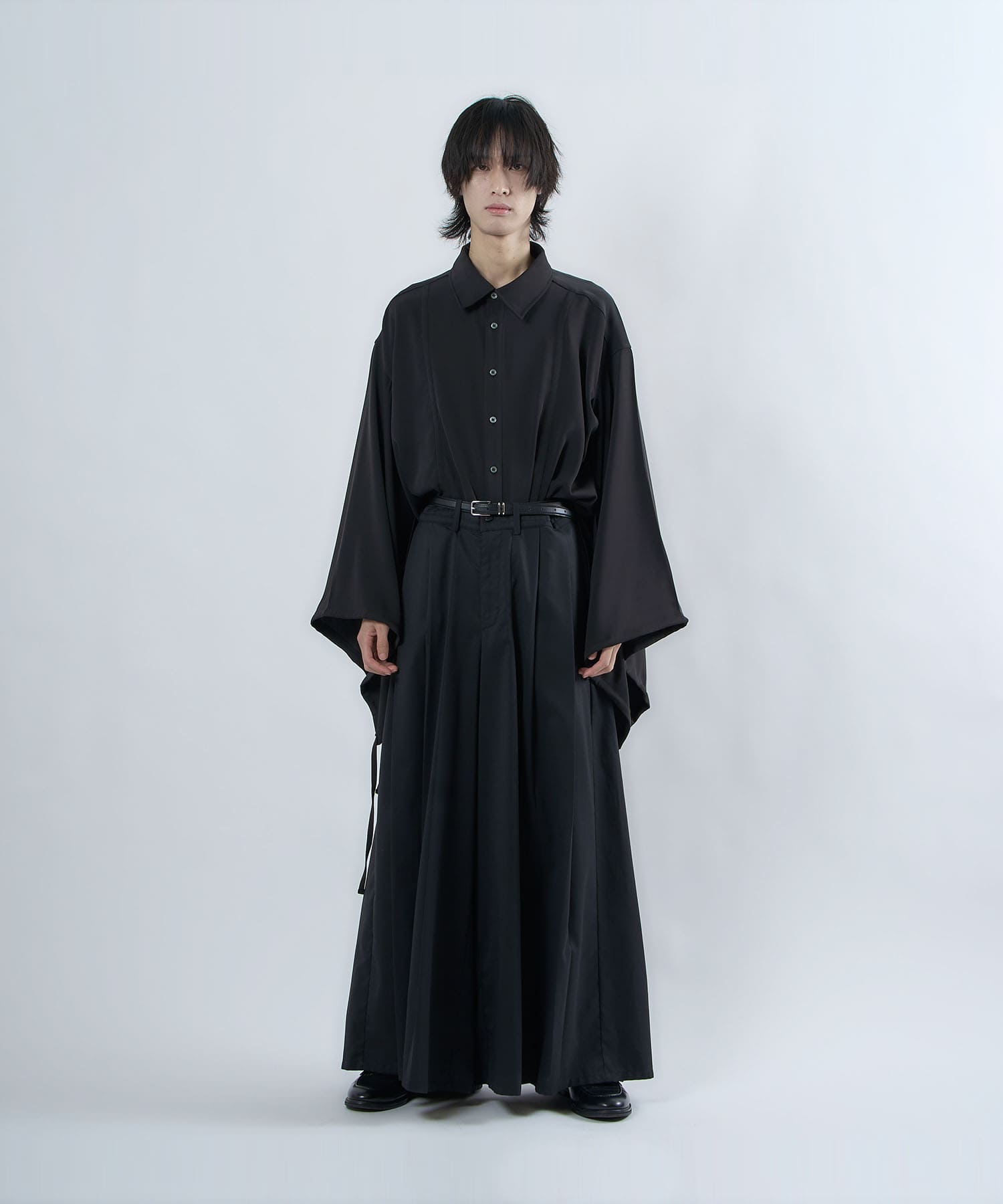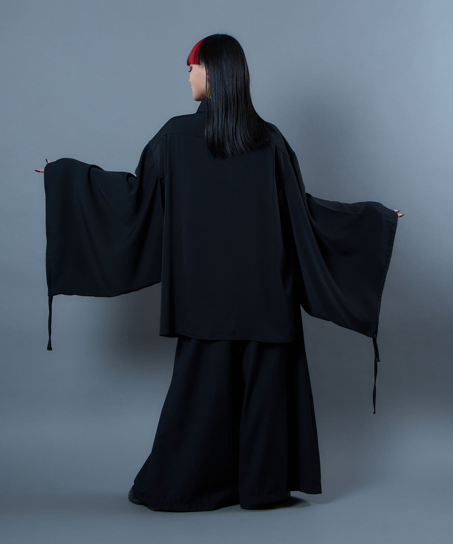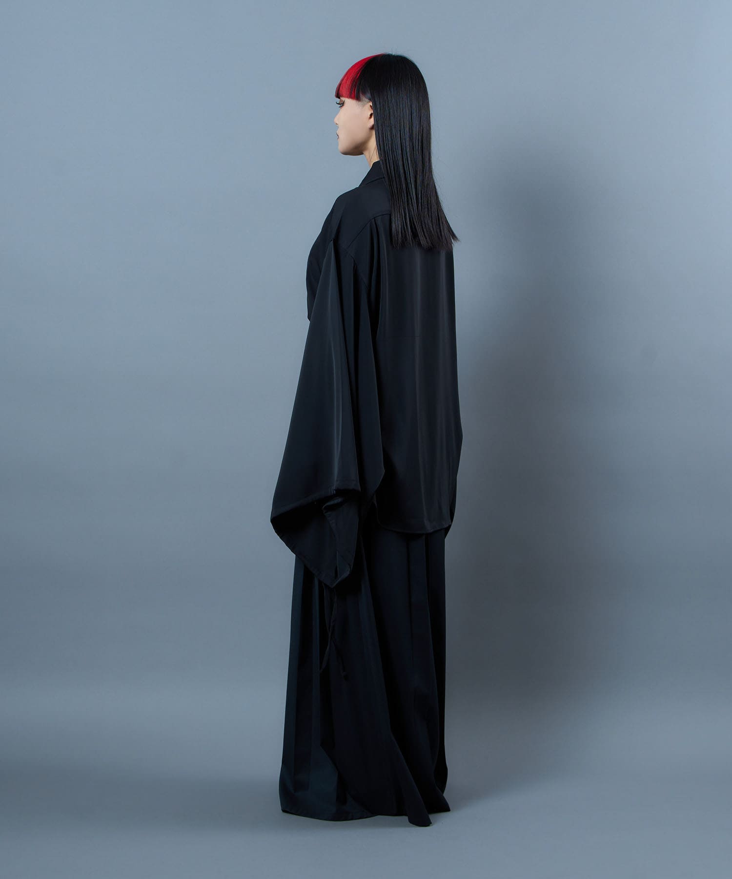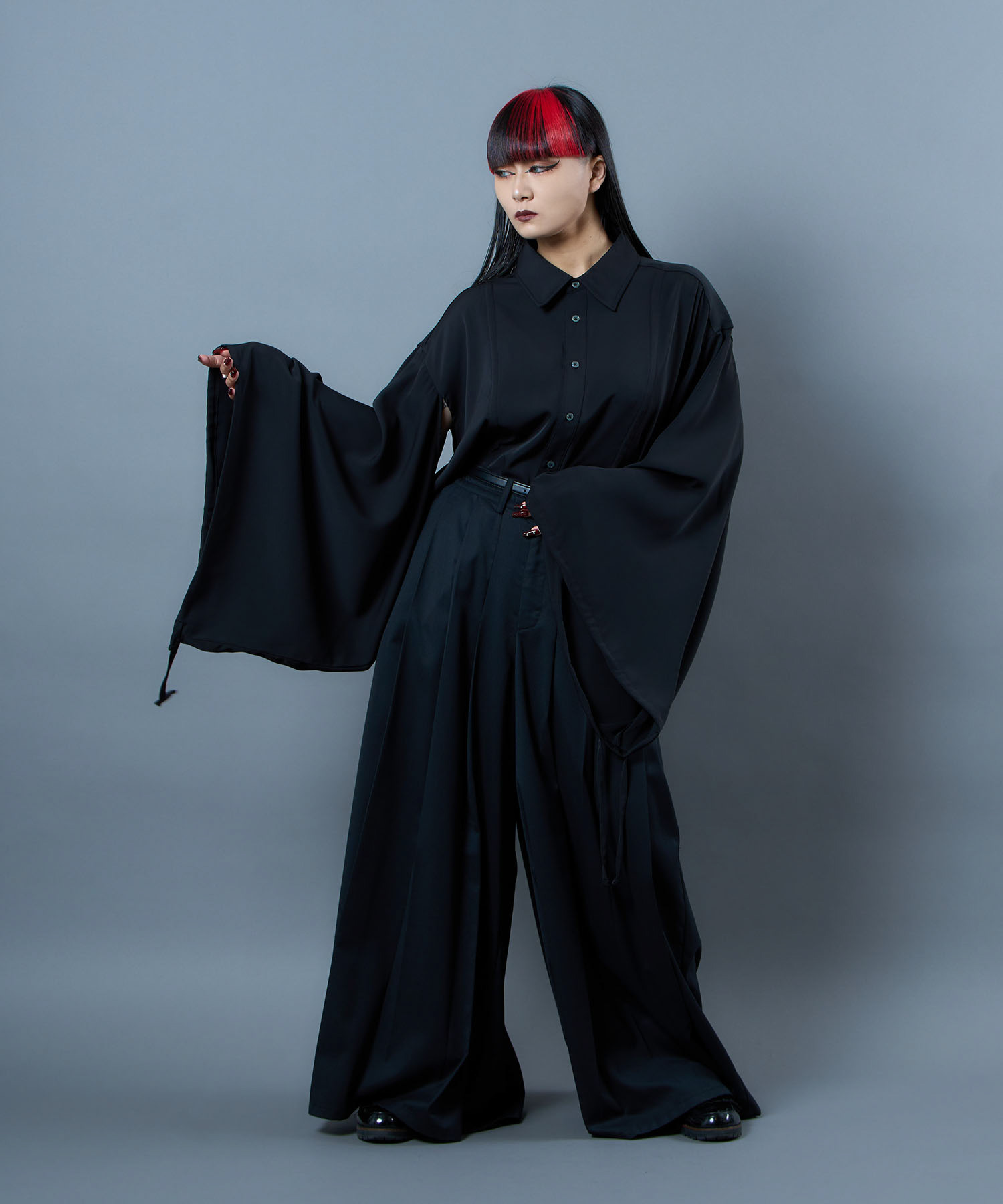 Tuck detailing at the front, back, and sides creates dynamic movement and a strong silhouette.Compared to our standard Hakama pants, this piece leans more toward the traditional style while still offering versatile styling options.