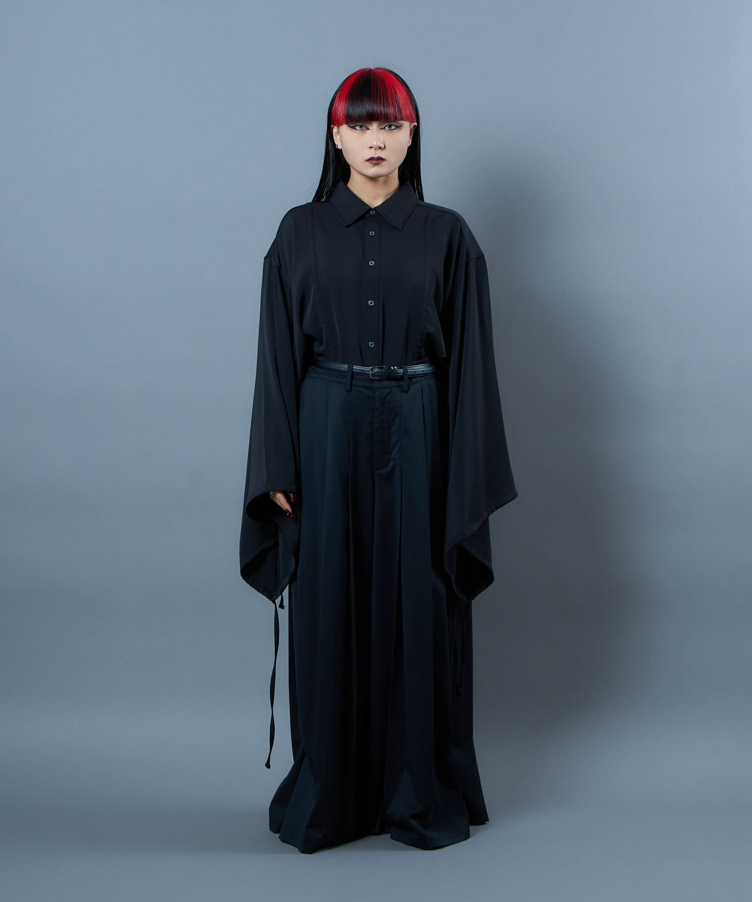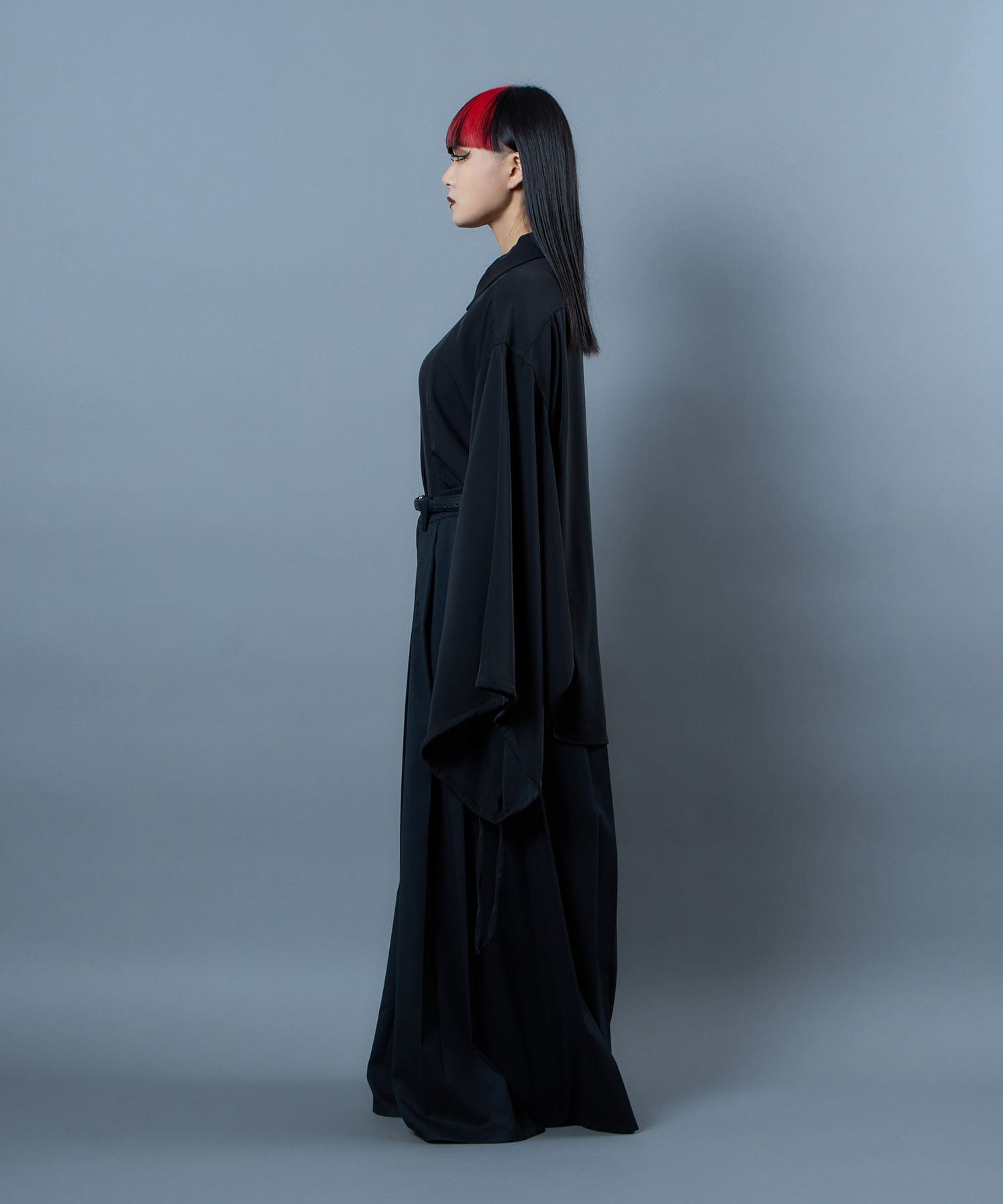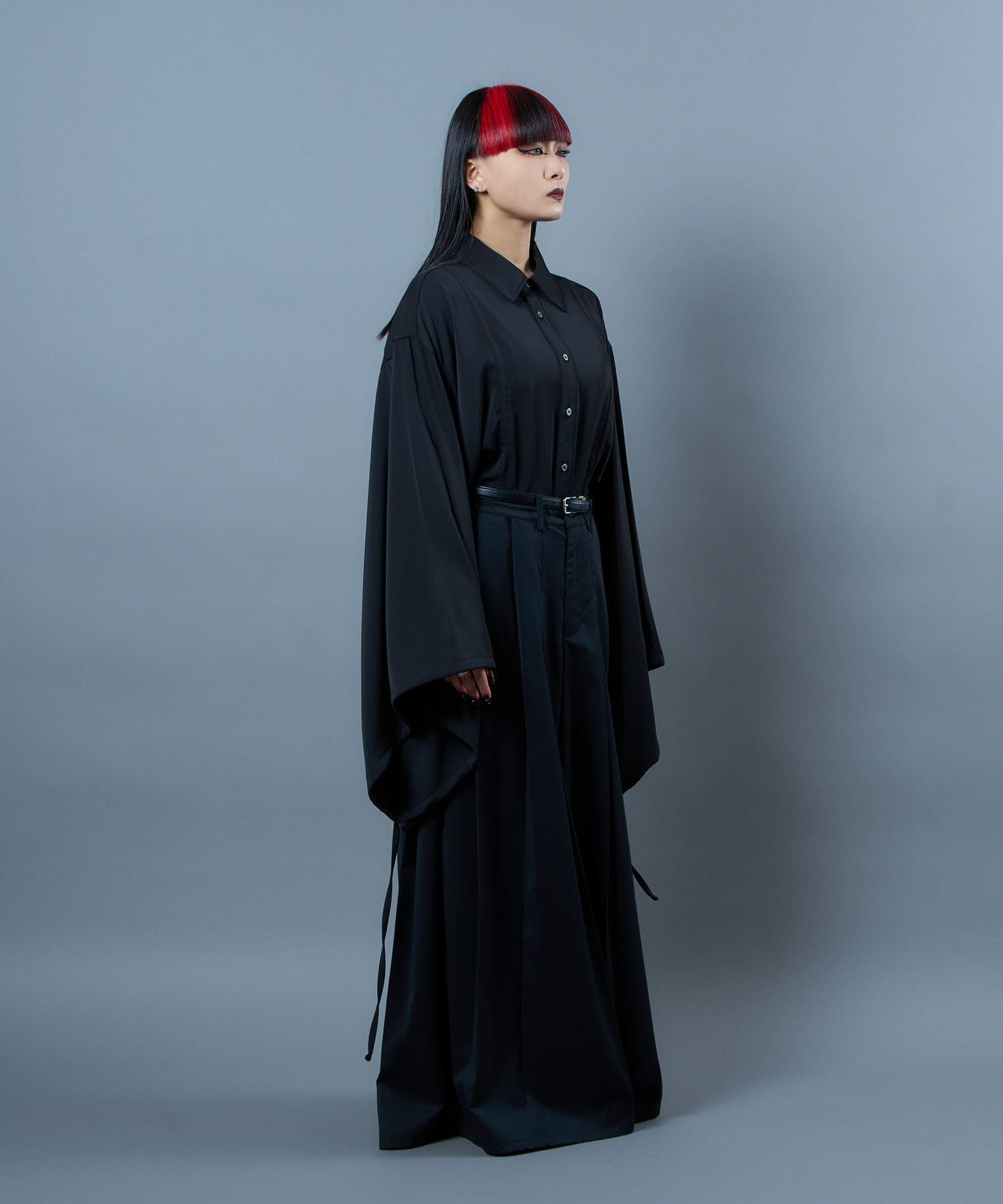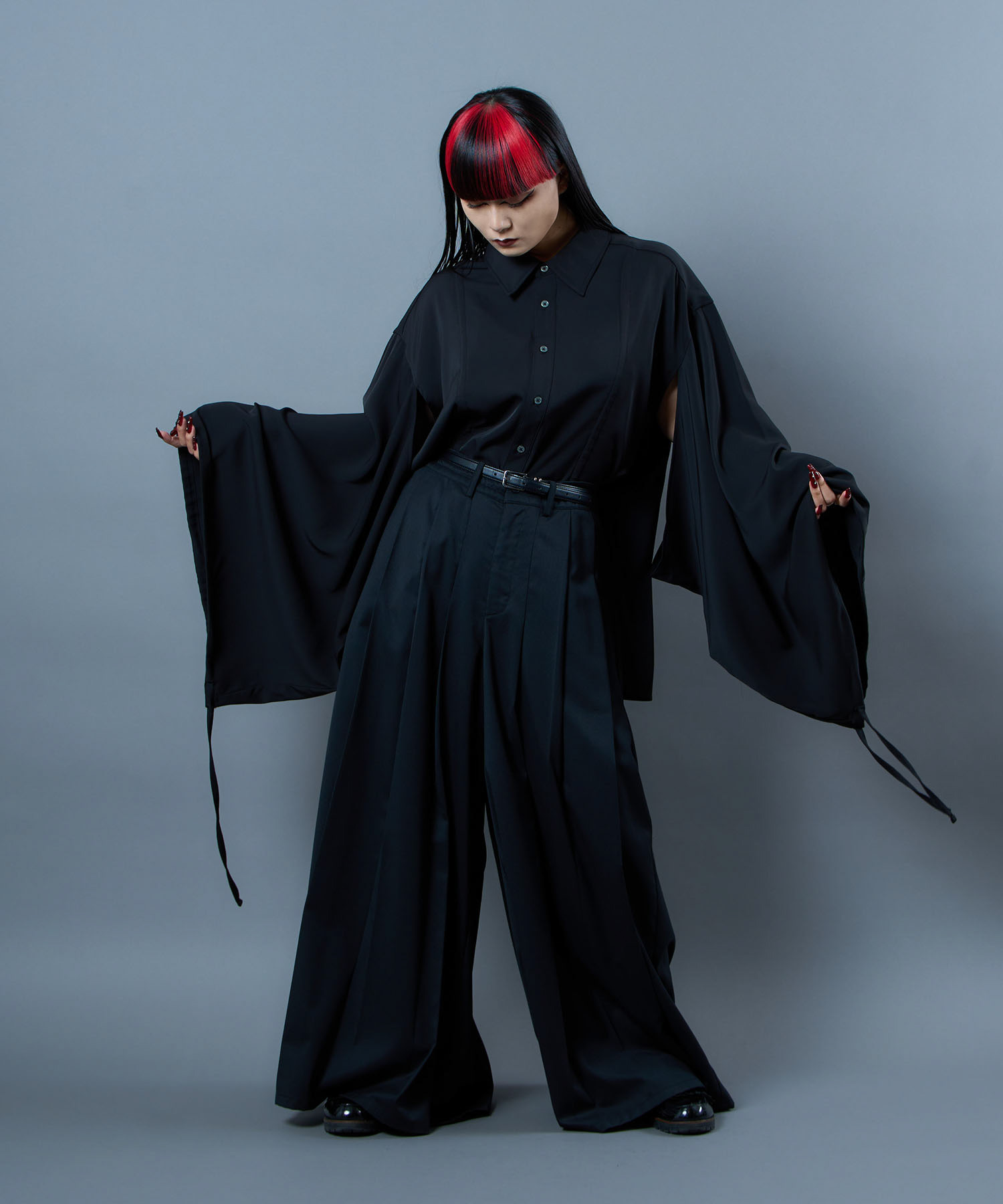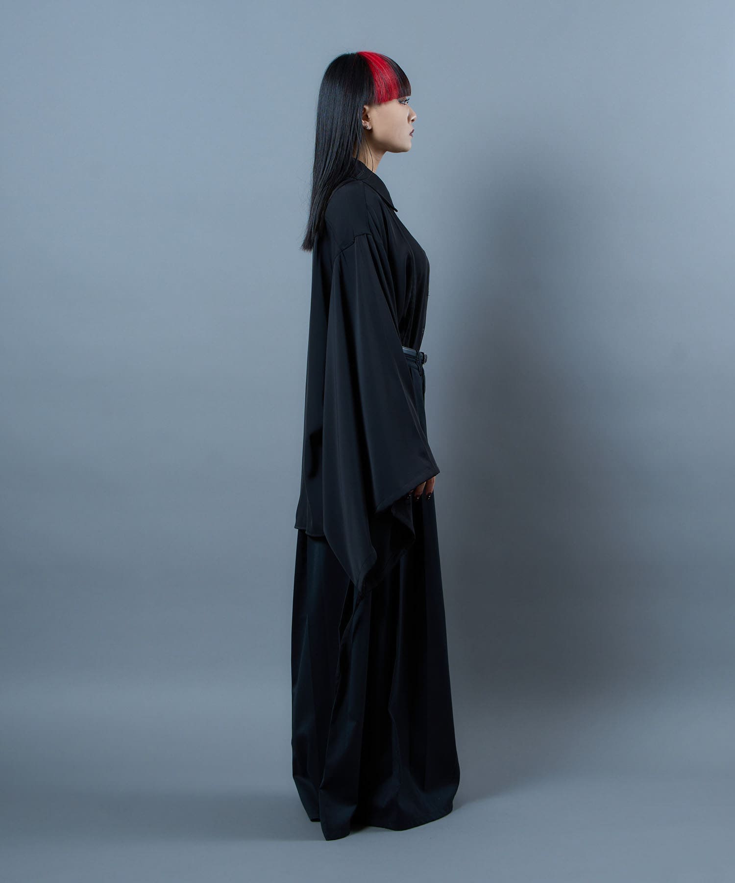 Tuck detailing at the front, back, and sides creates dynamic movement and a strong silhouette.Compared to our standard Hakama pants, this piece leans more toward the traditional style while still offering versatile styling options.