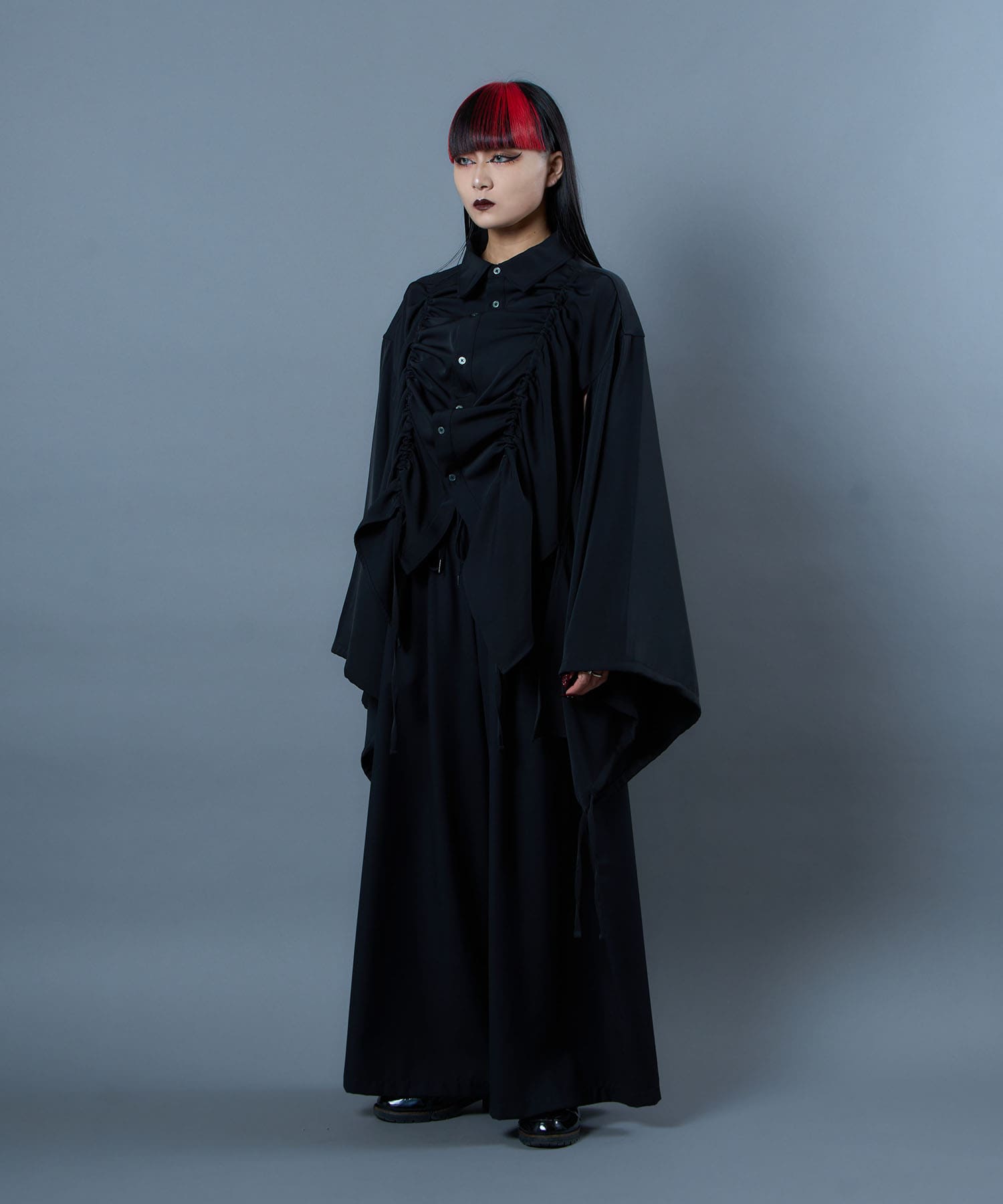 ウール混の生地ですが、サラサラとした肌触りで軽い着心地です。日本の伝統衣装の【袴】からインスピレーションを得て、モードへとアップデートしました。