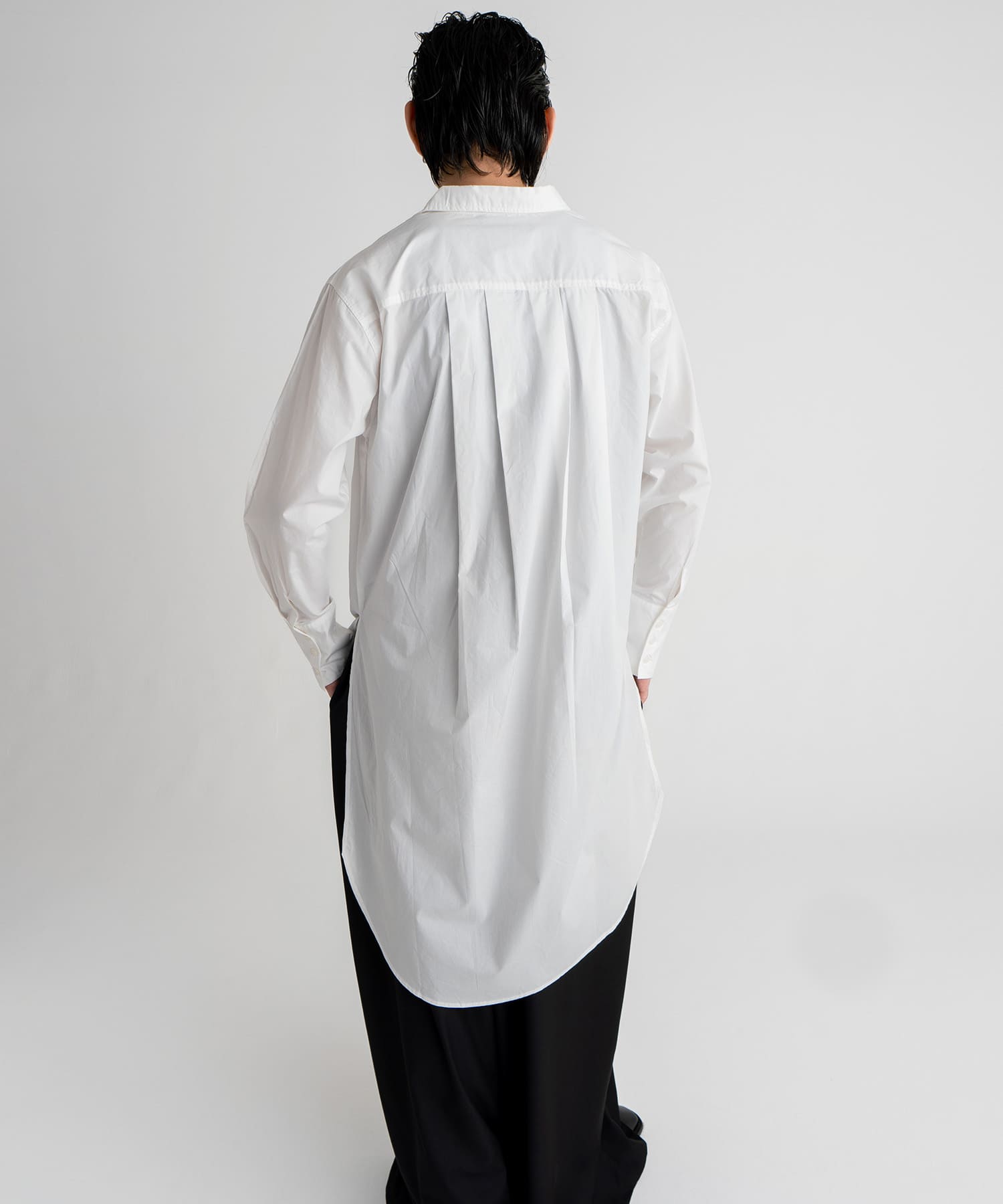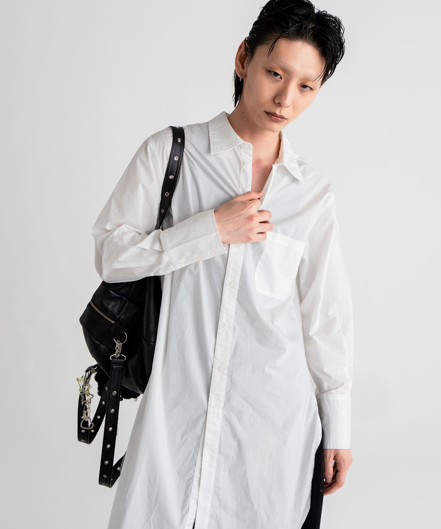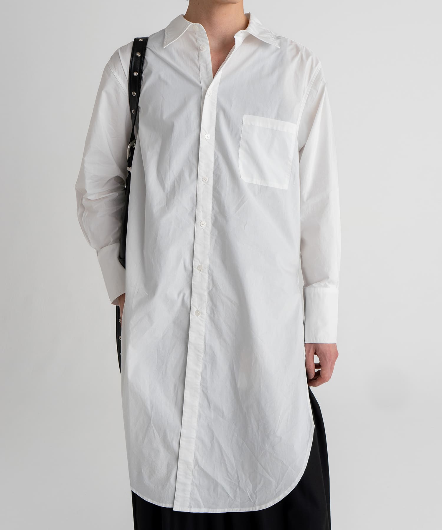 コットン100%の天然素材を使用したスリットロングシャツ。