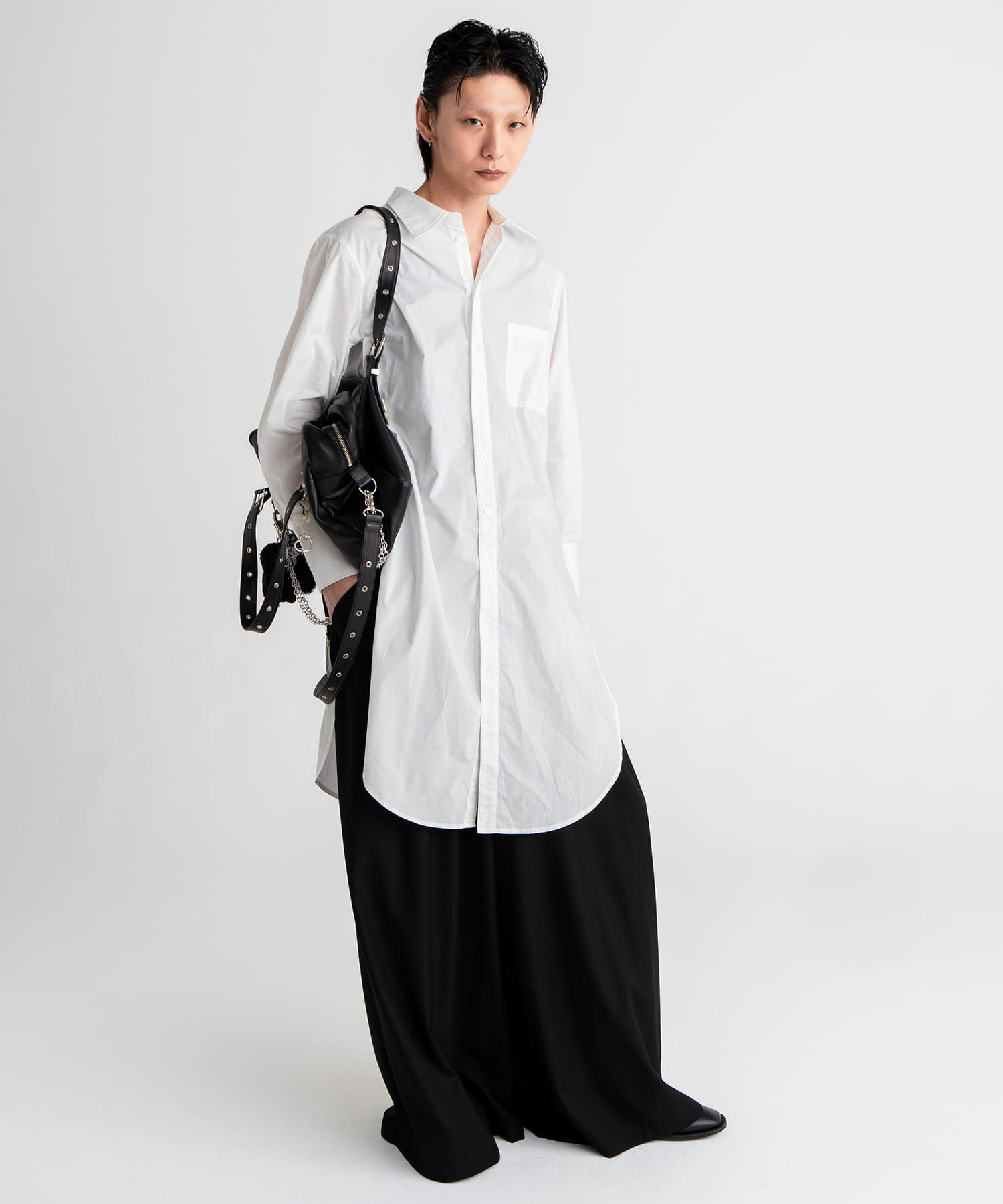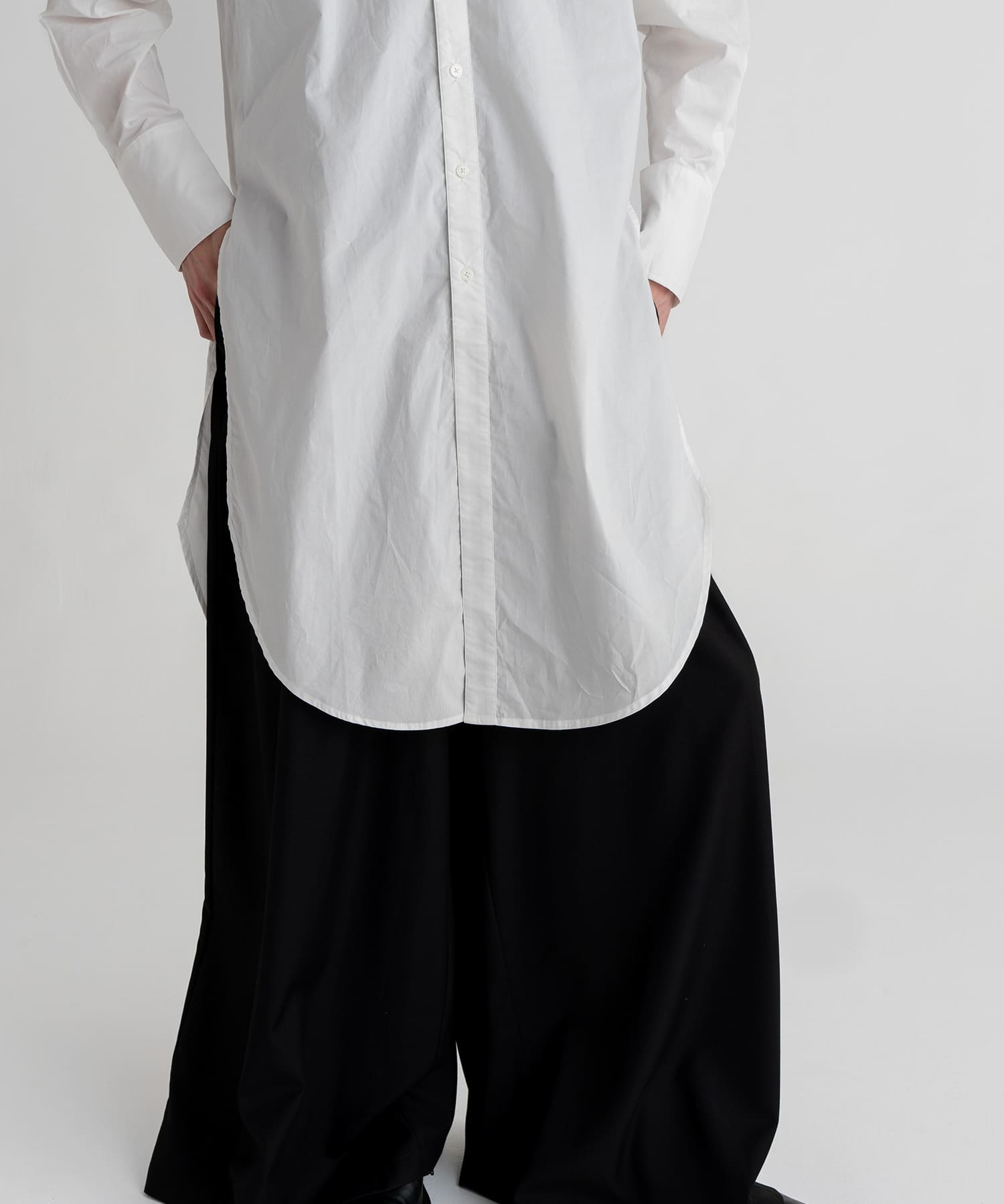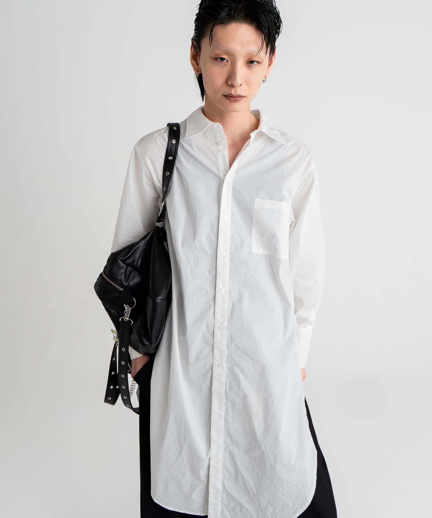 コットン100%の天然素材を使用したスリットロングシャツ。