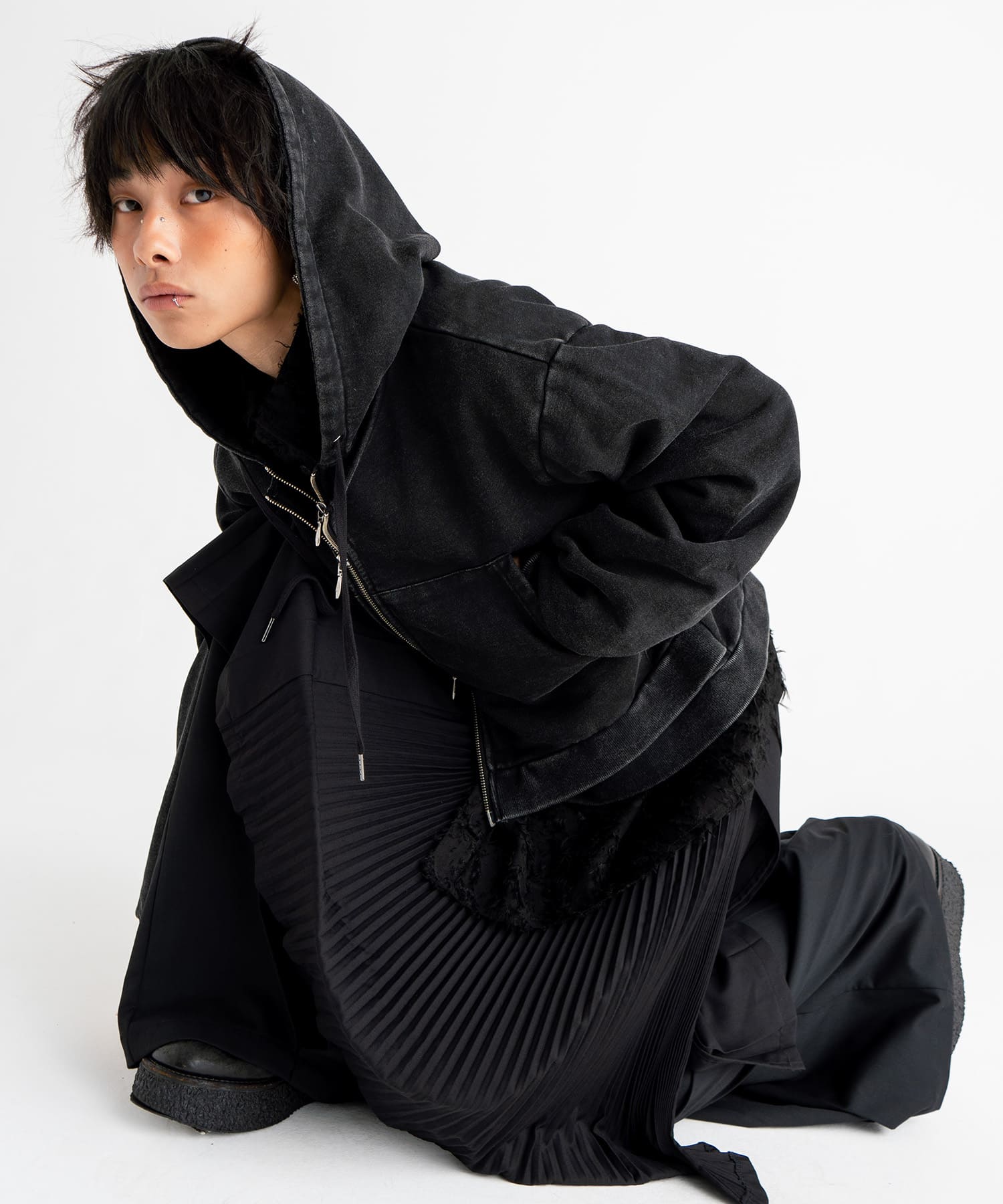 オリジナルのT/R生地(ポリエステル/レーヨン)を使用したアコーディオンプリーツラップスカート。