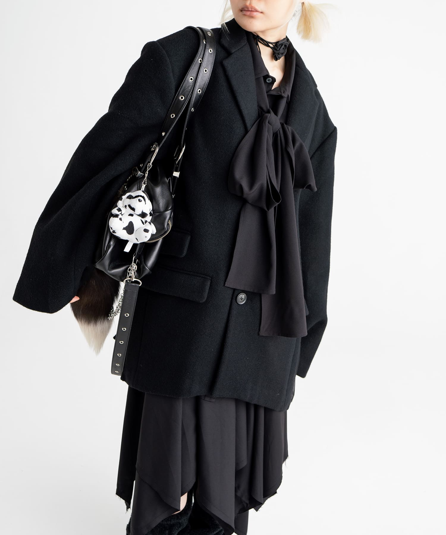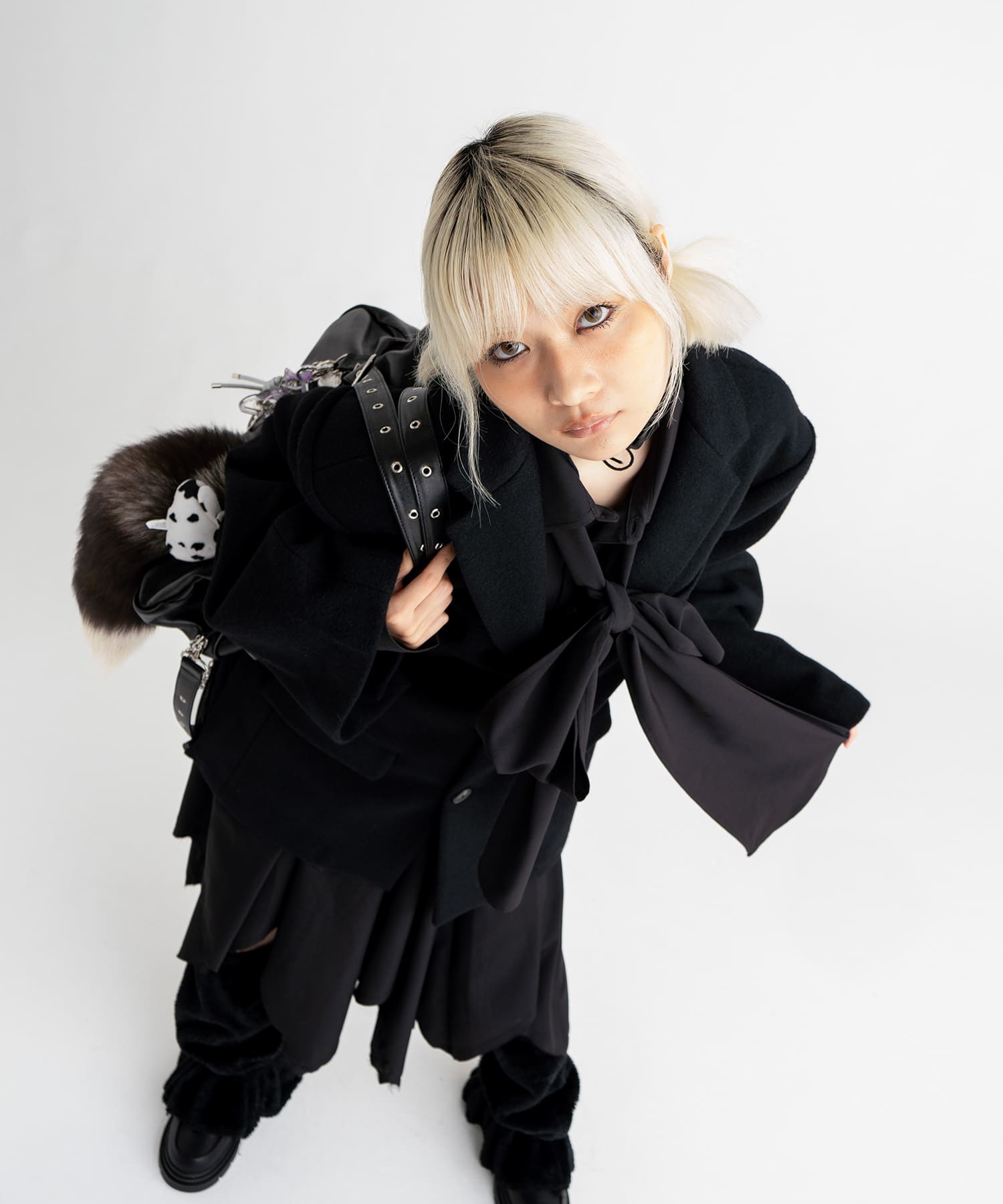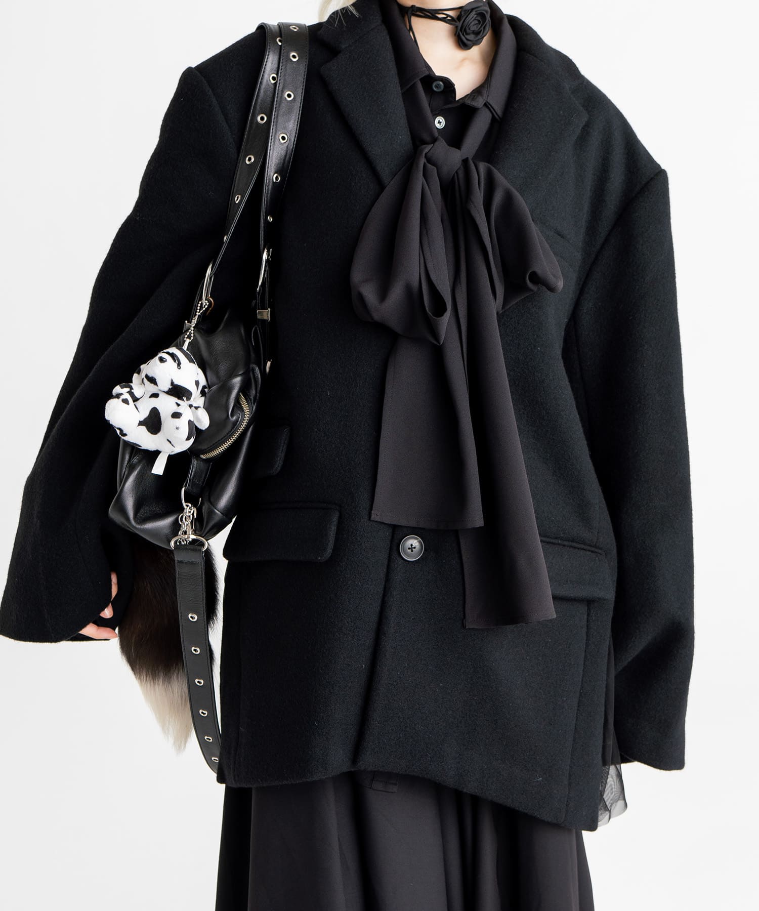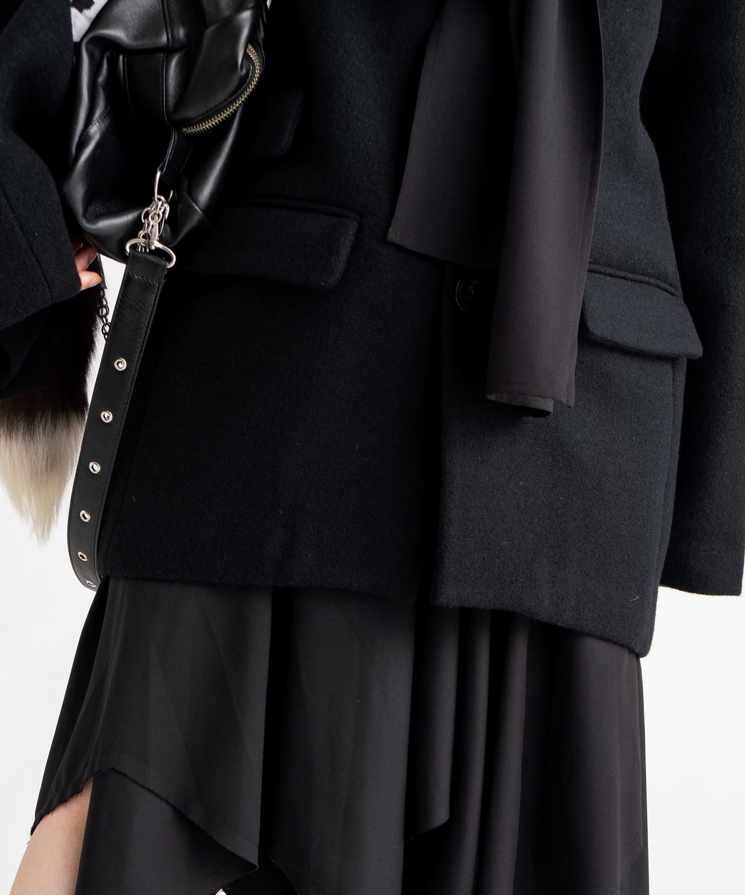 リサイクルウールとチュールの異素材を組み合わせたウール×シアー オーバージャケット。