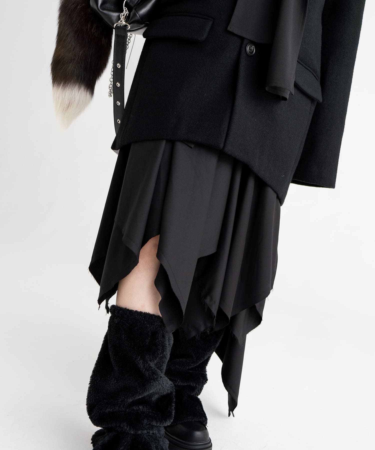 後ろ身頃のウエスト下は切り替えを使い、トップのウール生地の間からチュール生地が見え隠れする仕様となっております。