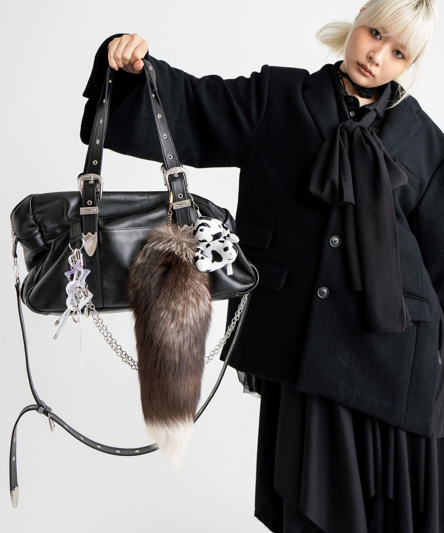 メンズのスタンダードなジャケットにフレアでオーバーなシルエットや、柔らかいチュール素材を組み合わせ少しフェミニンな印象のあるデザインに仕上げました。