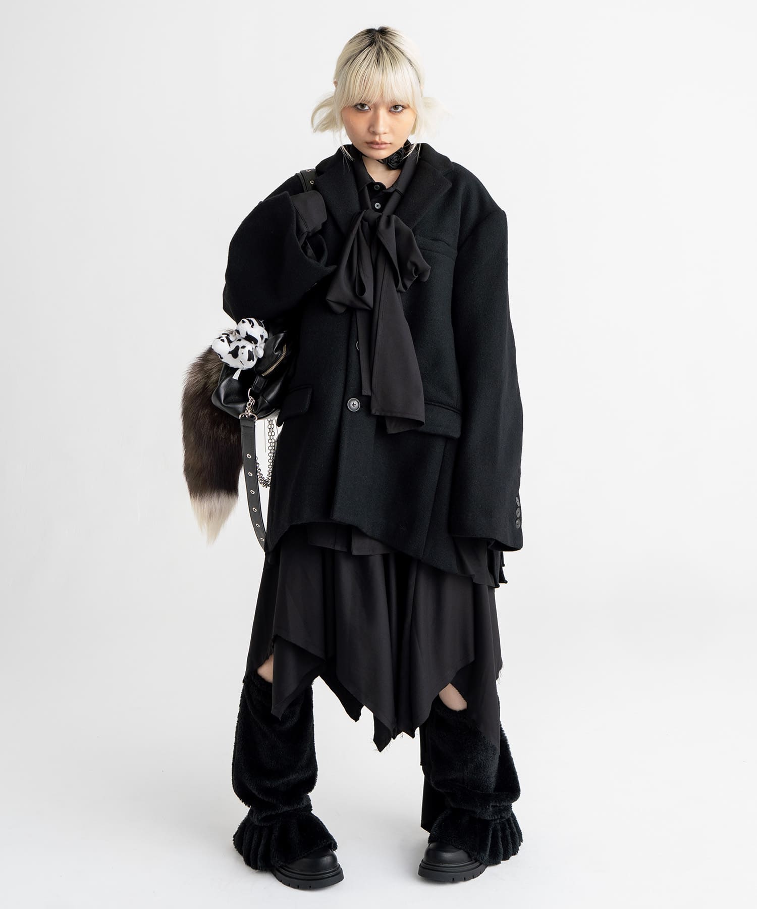 Wool × Sheer Oversized Jacket combining recycled wool and tulle.