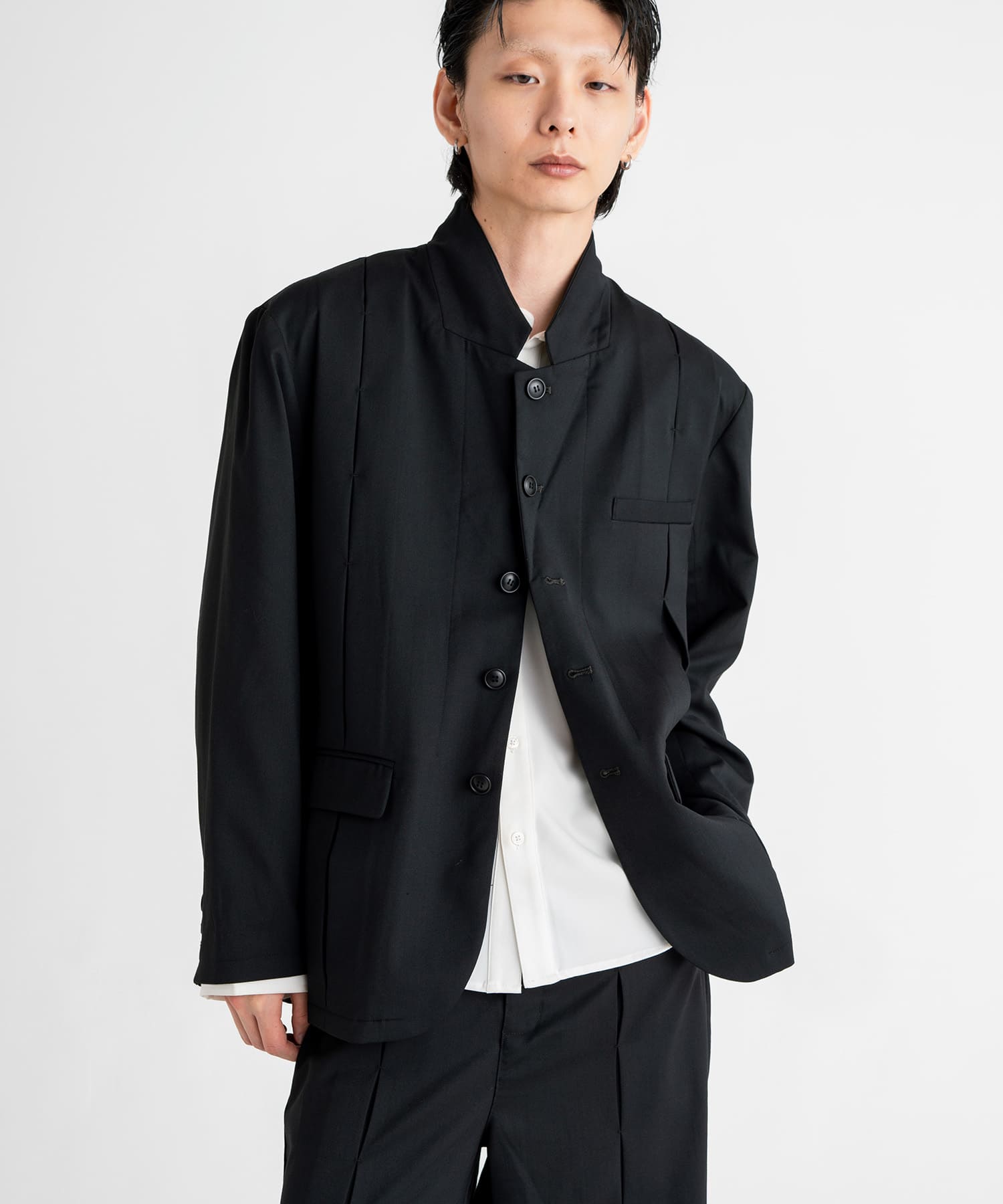 ポリエステル×ウールの上質な生地を使用したバータックデザインジャケット。