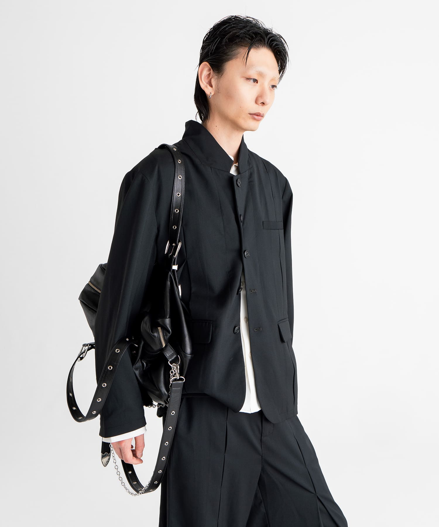 シーズンコンセプトのスクールテイストをなぞり、学ランのように襟を立てた状態でもご着用いただける、2WAY仕様のジャケットとなっております。