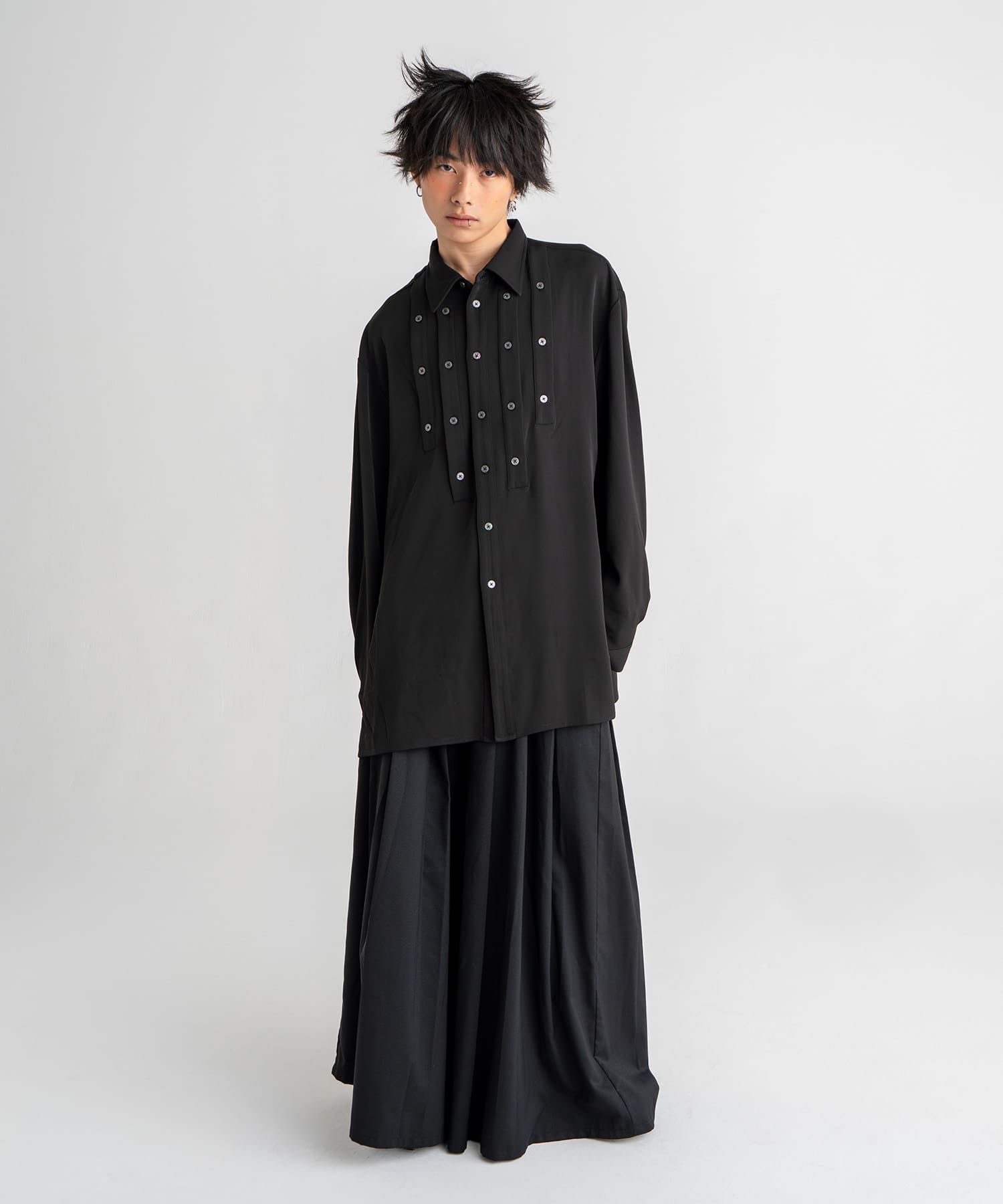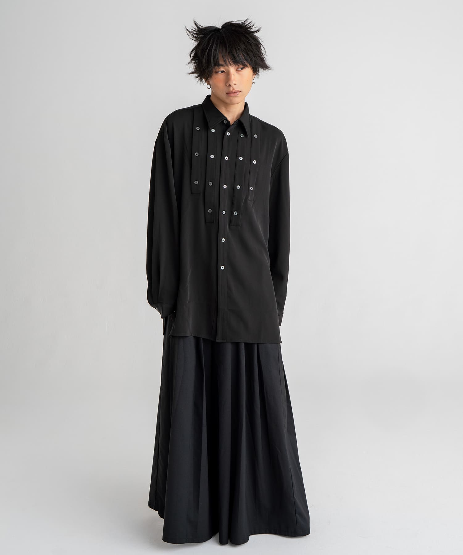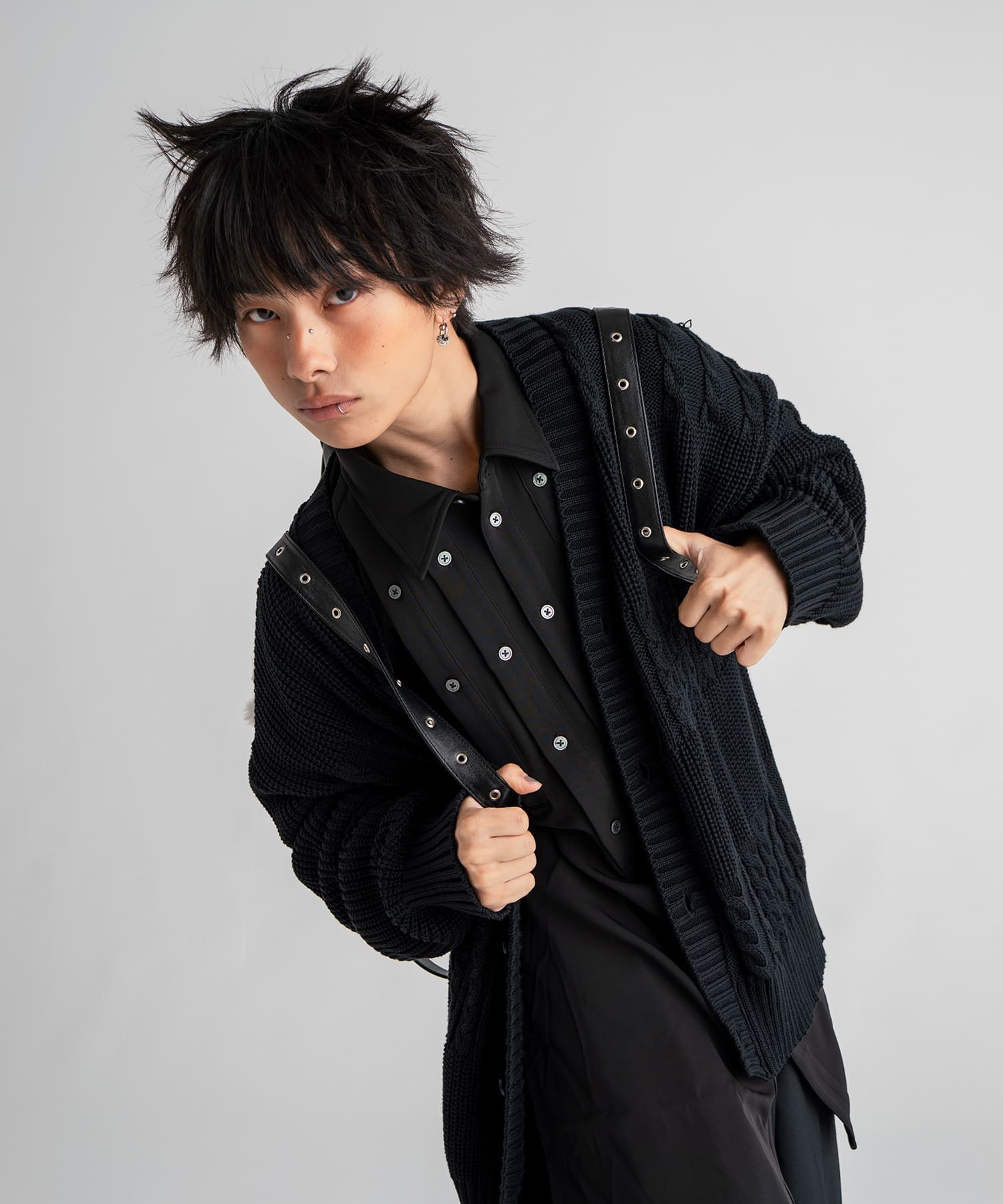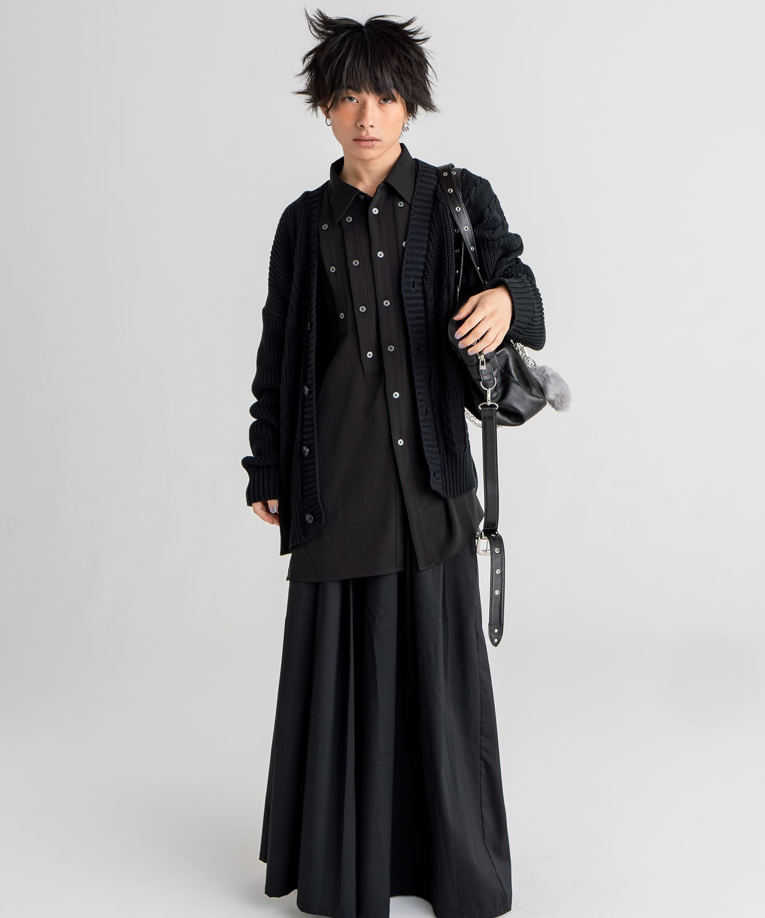 Both the body and sleeves can be opened like a slit when the buttons are undone, making it a versatile piece that can be worn alone or layered.
