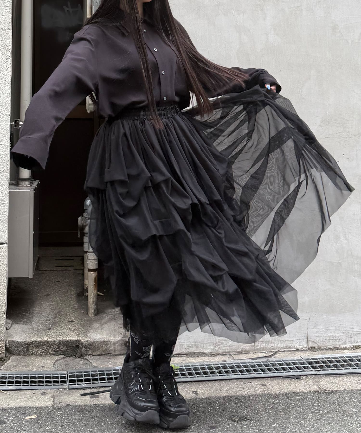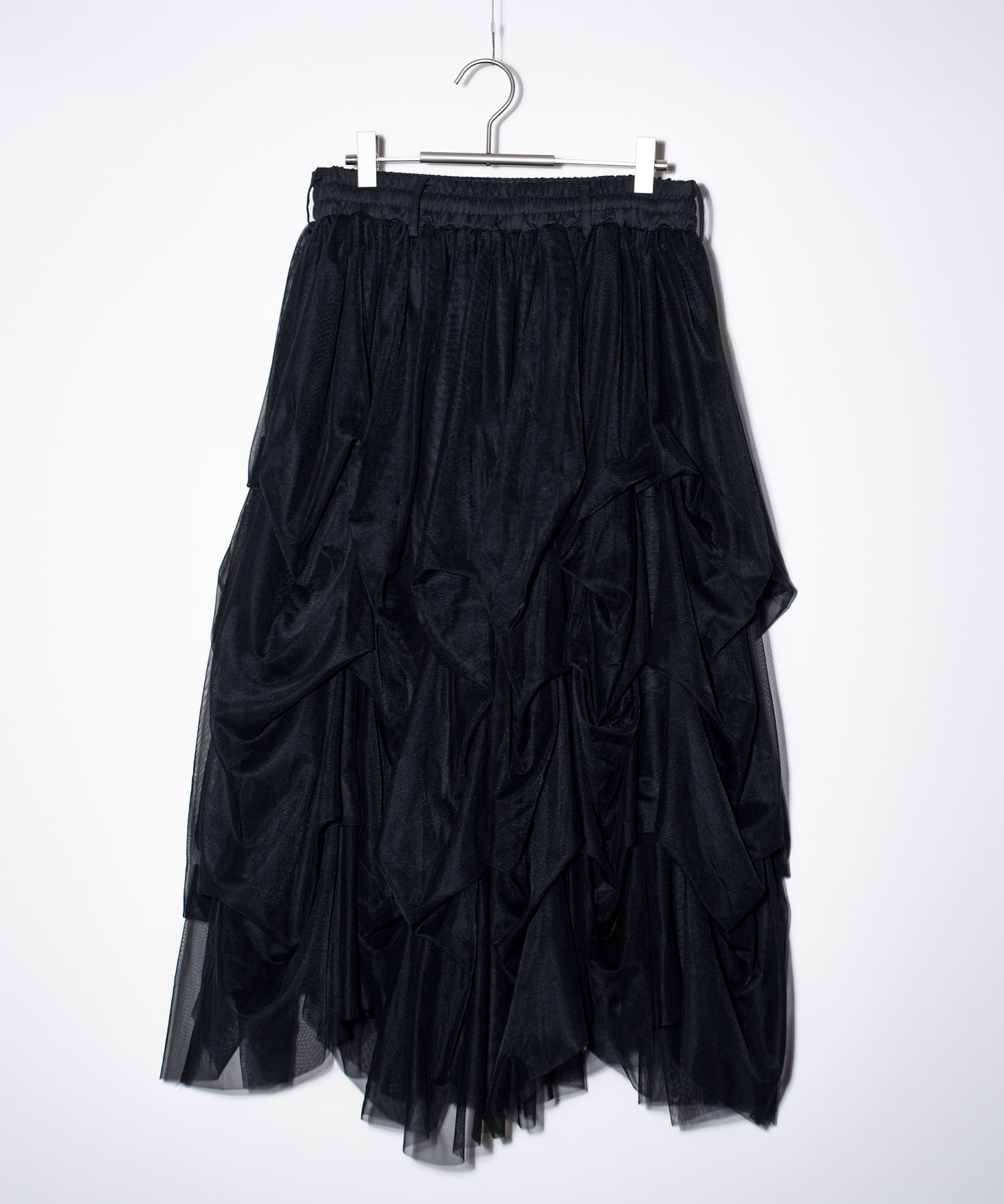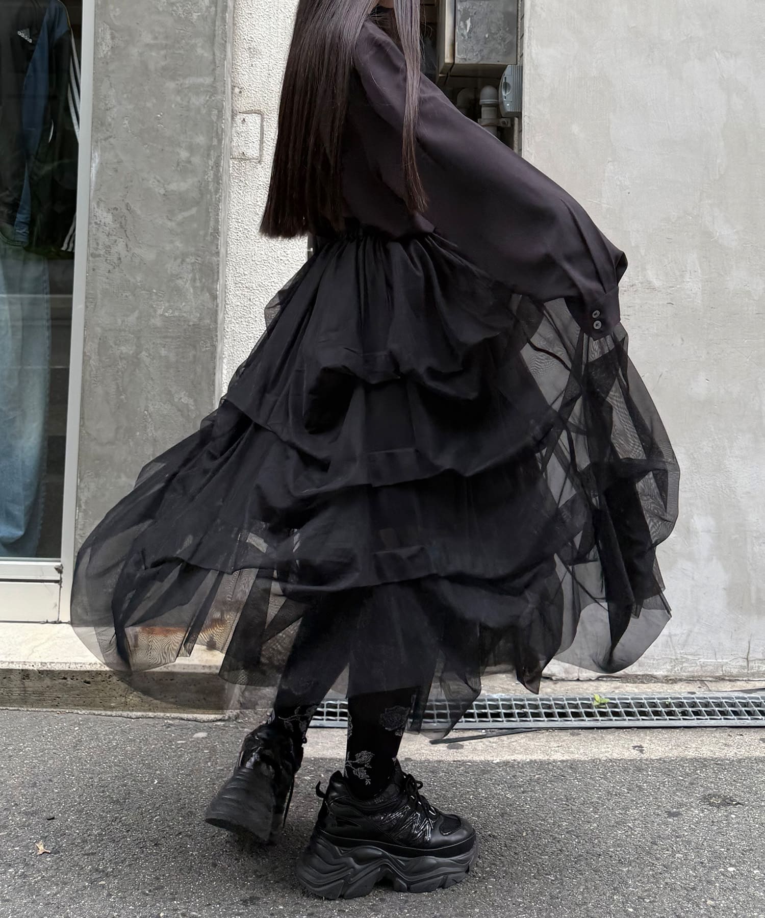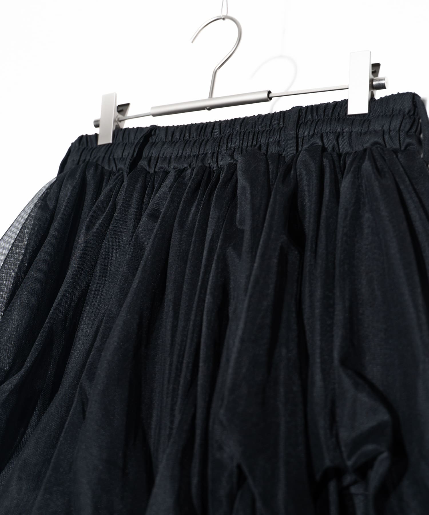 透け感のあるチュール生地を使用したボリュームタックチュールスカート。