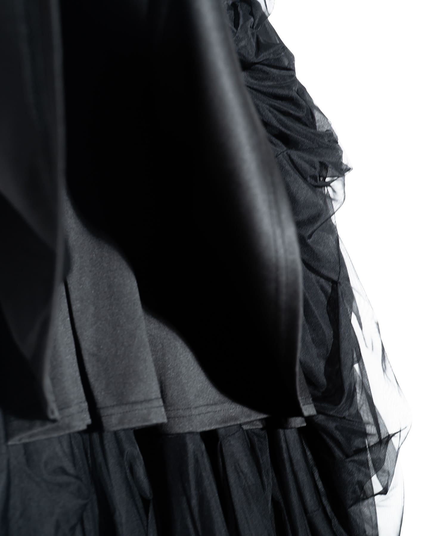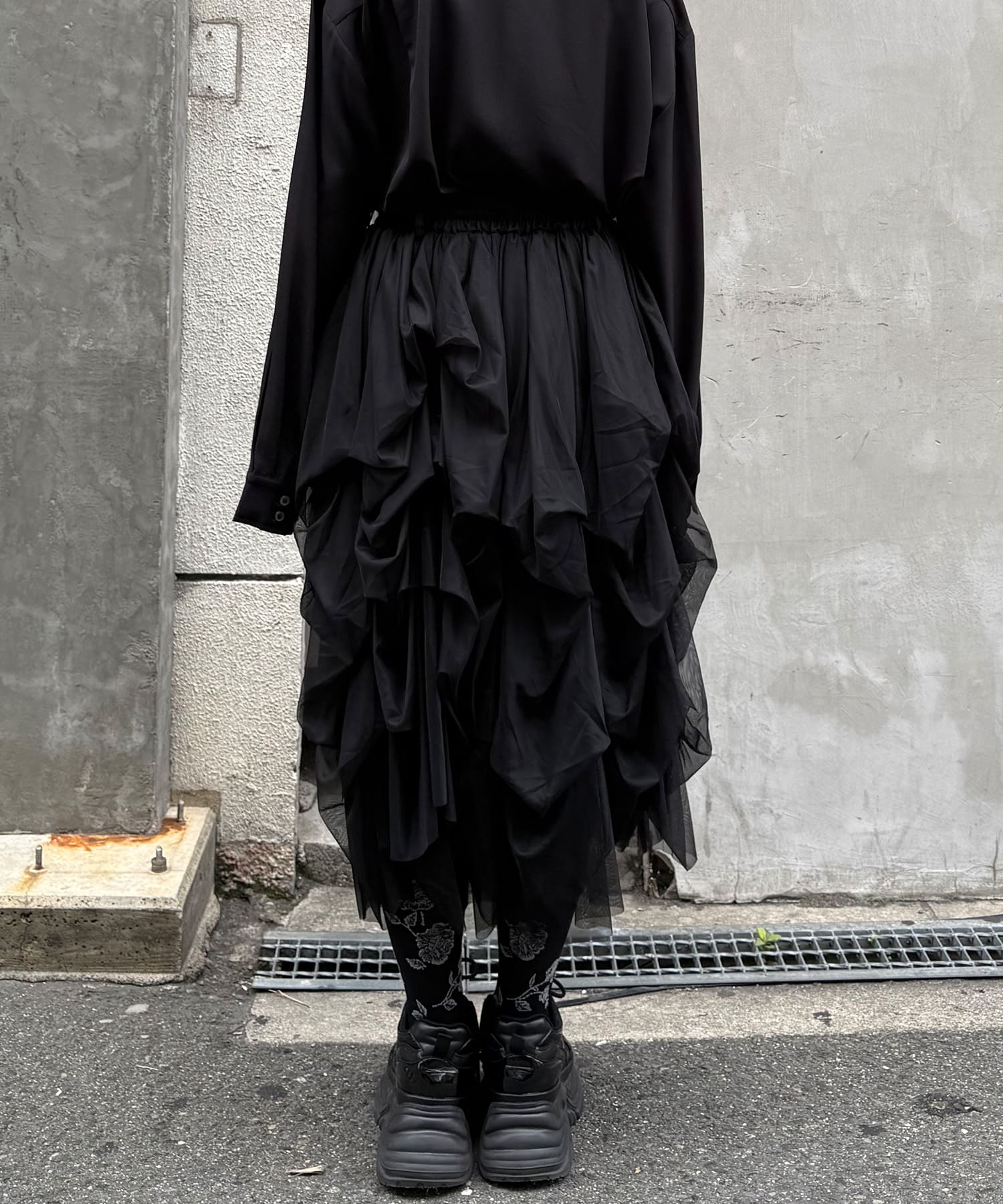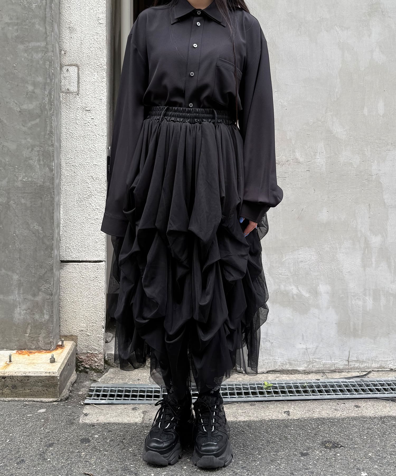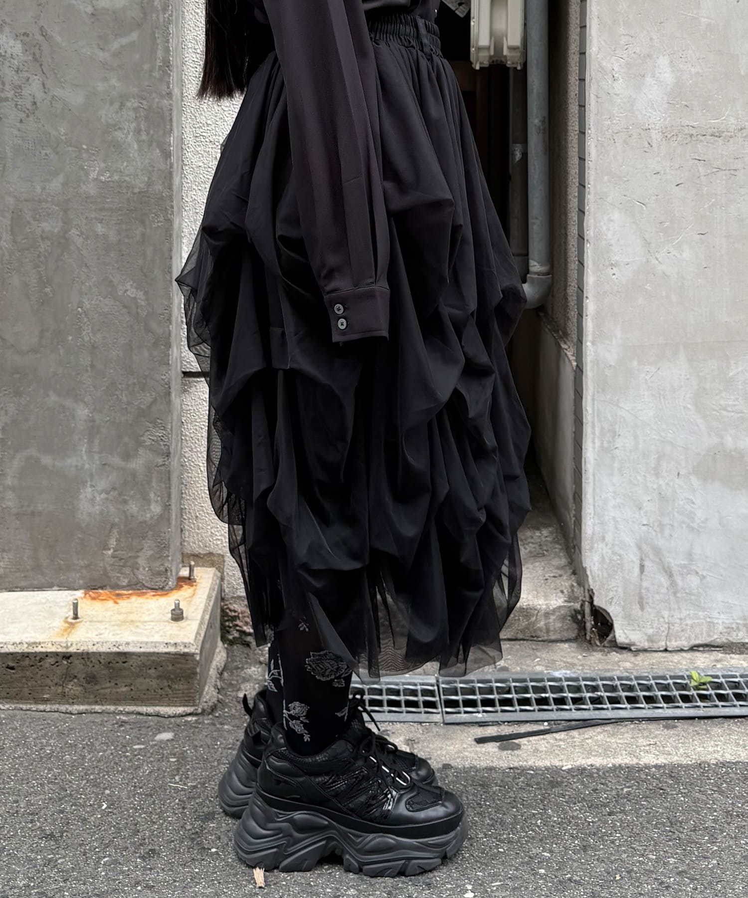 透け感のあるチュール生地を使用したボリュームタックチュールスカート。