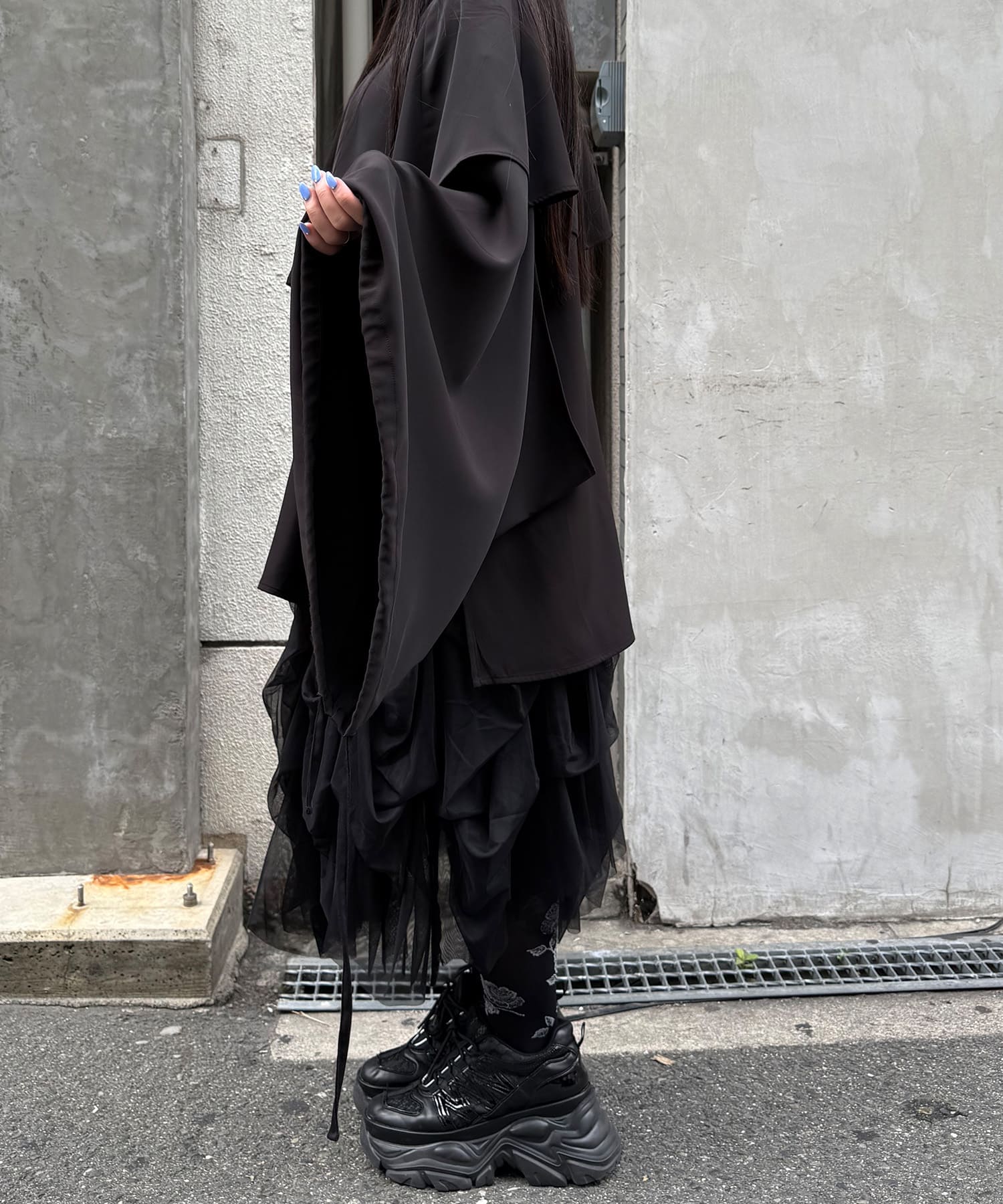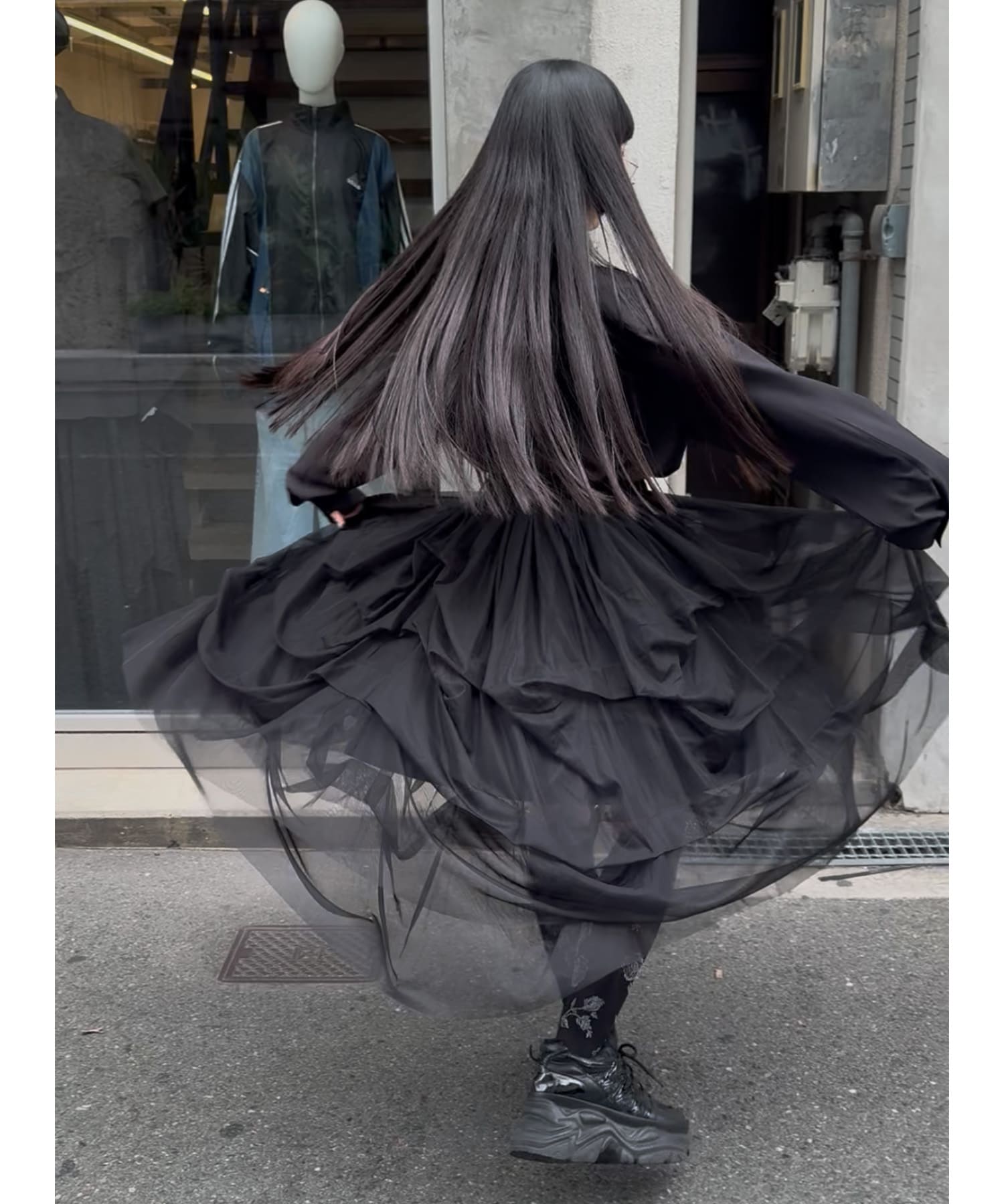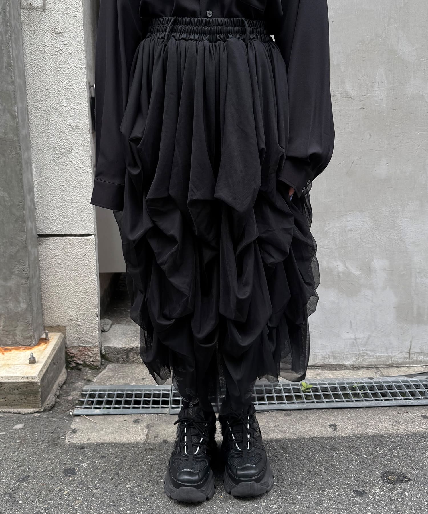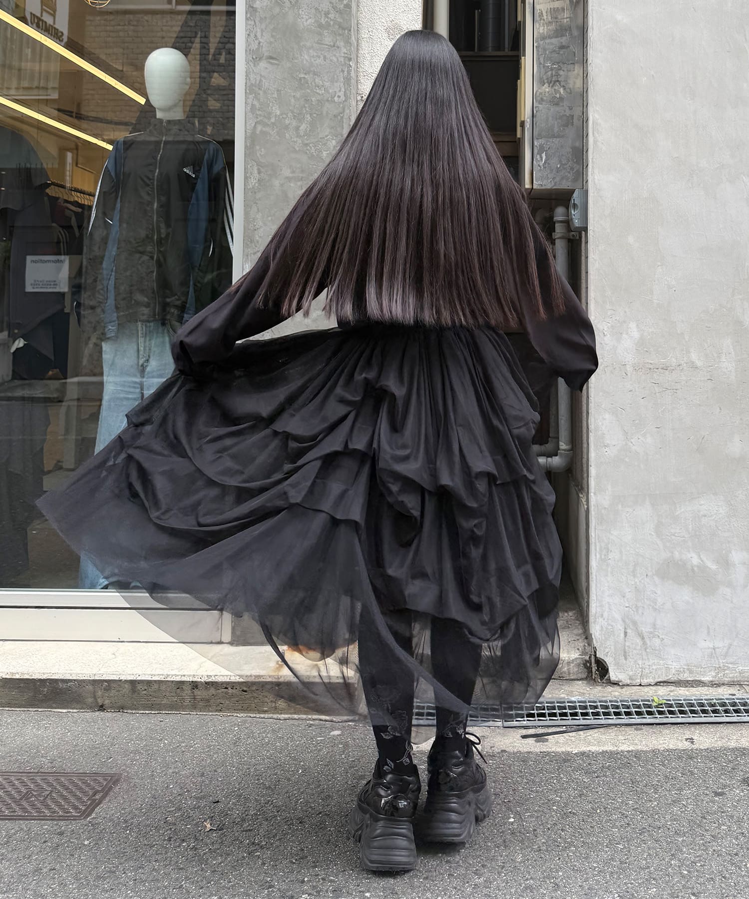 透け感のあるチュール生地を使用したボリュームタックチュールスカート。