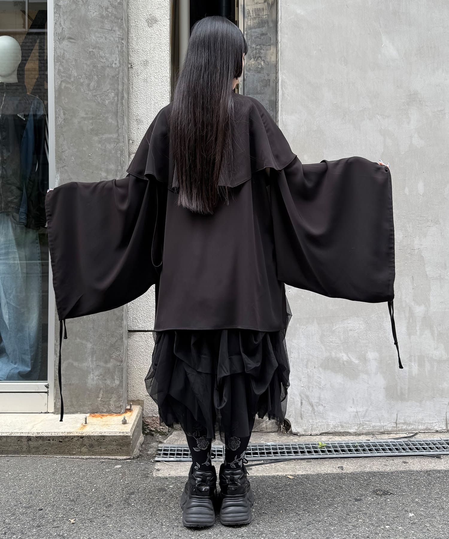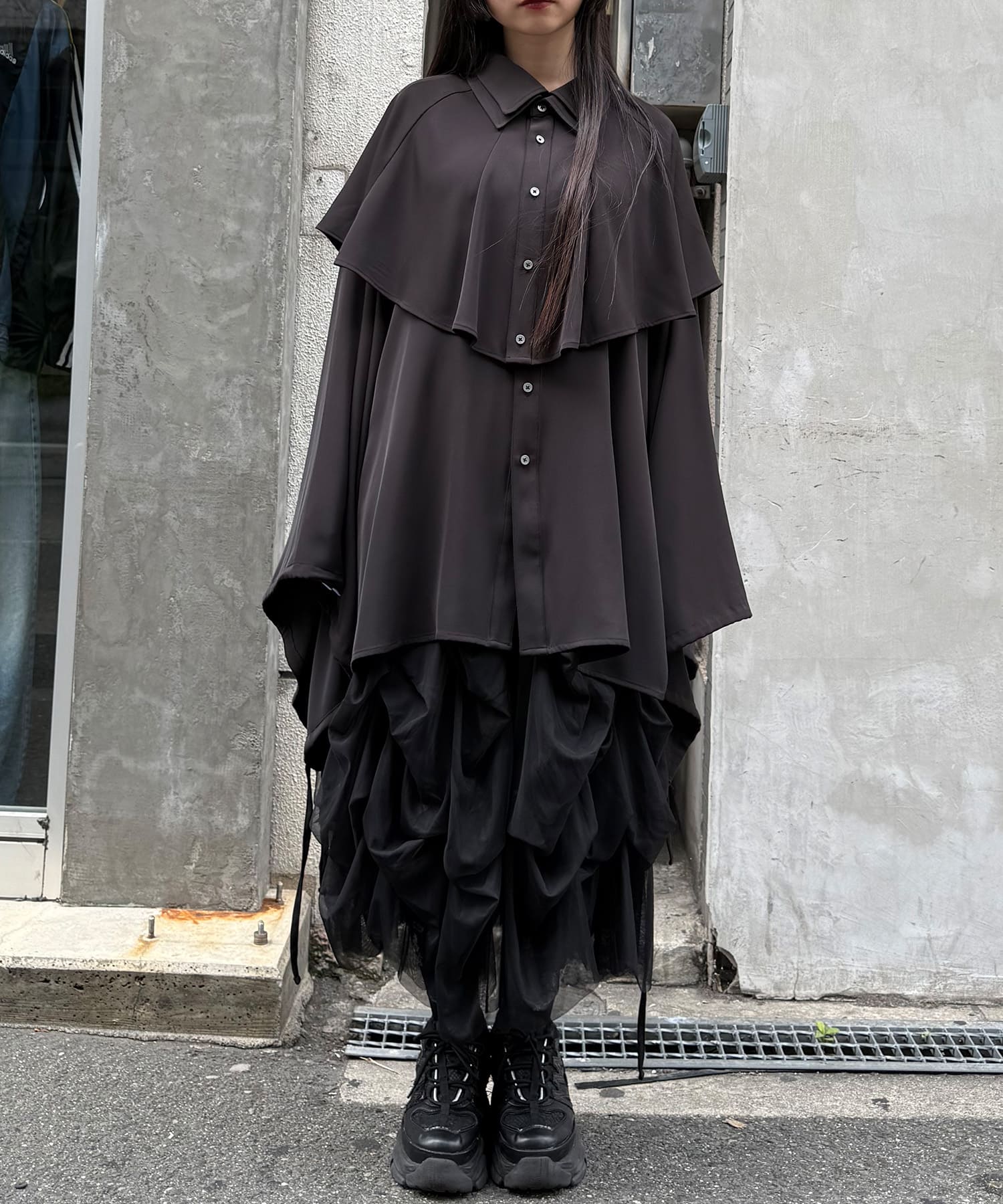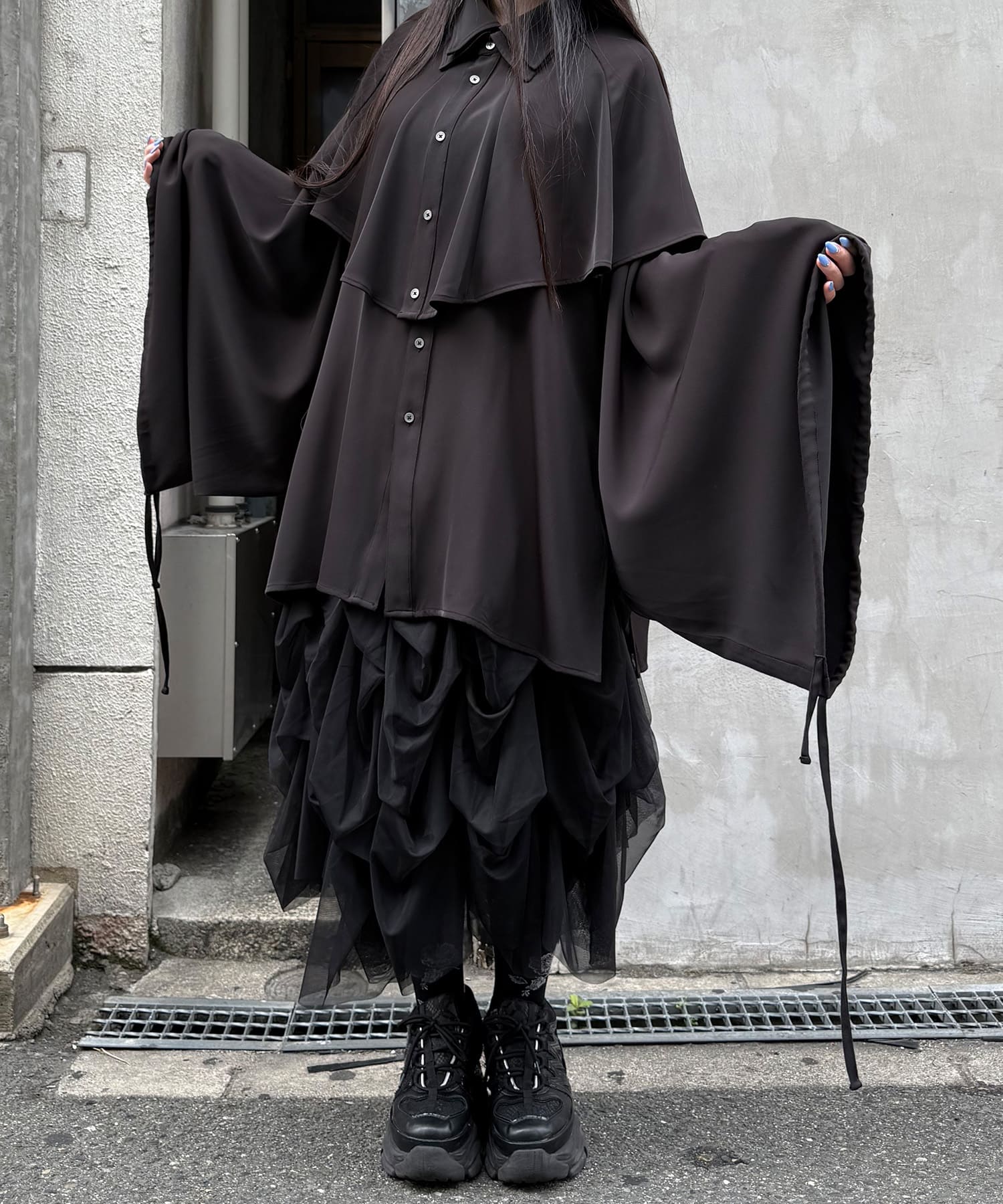 軽やかで肌触りの良いチュール生地を贅沢に使用し、ランダムにタックをとってボリュームを出しました。