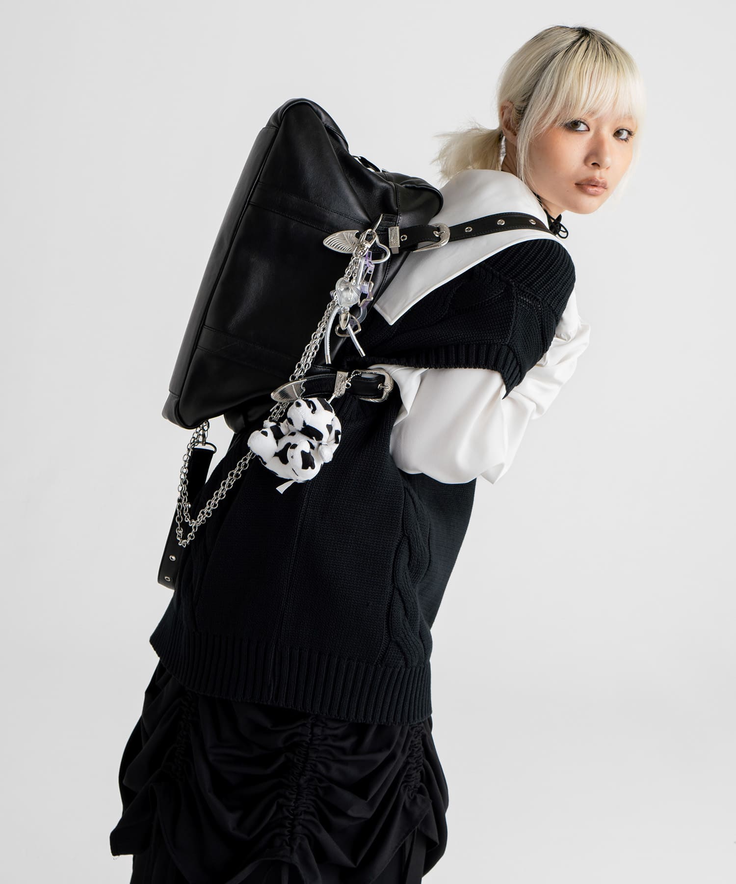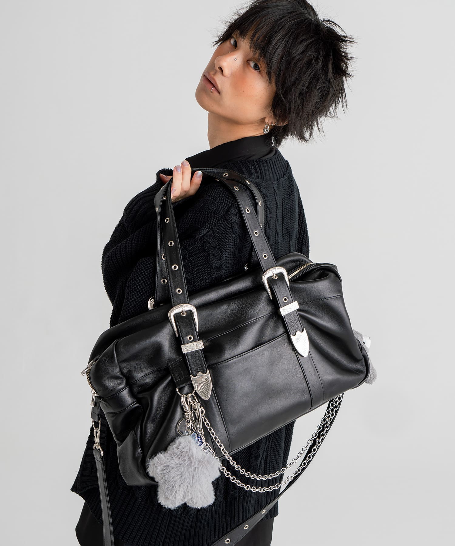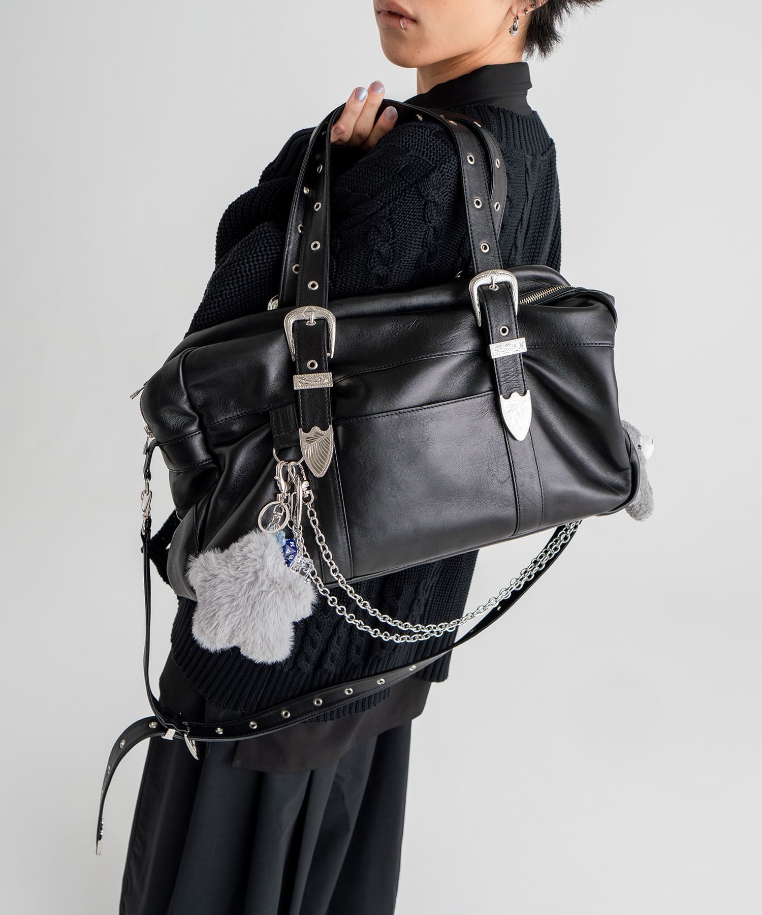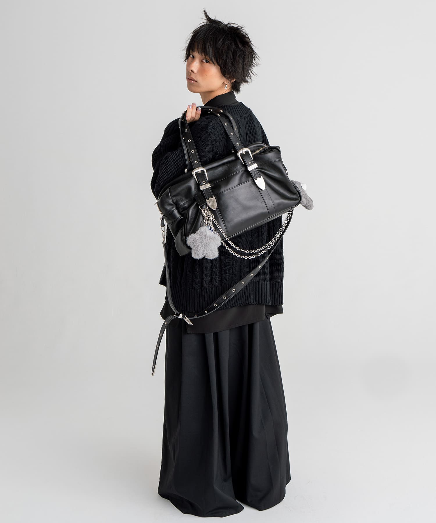 シーズンコンセプトのスクールテイストをなぞり学生鞄をイメージして製作したこのアイテムは、装飾感の強いバックルが特徴です。