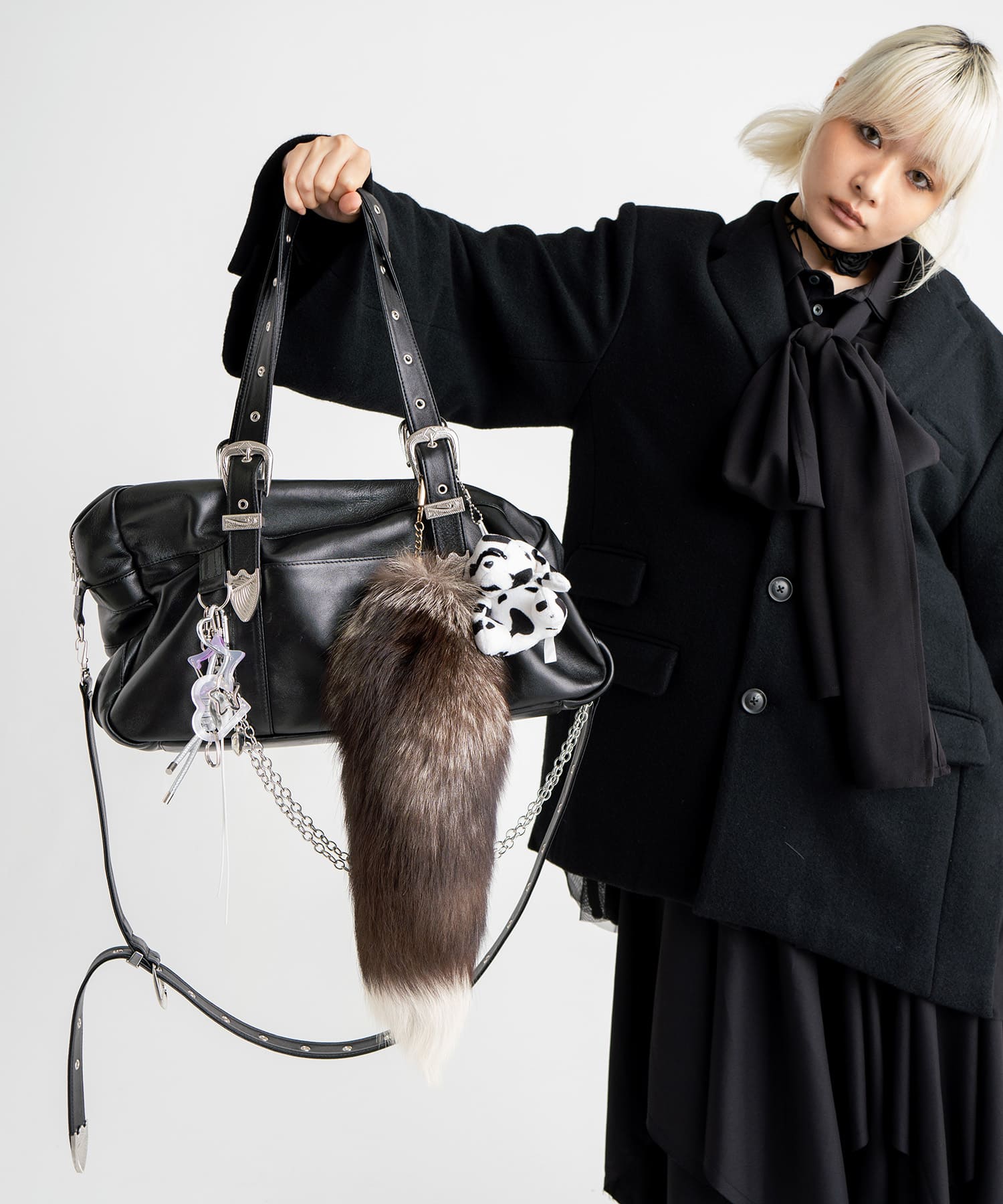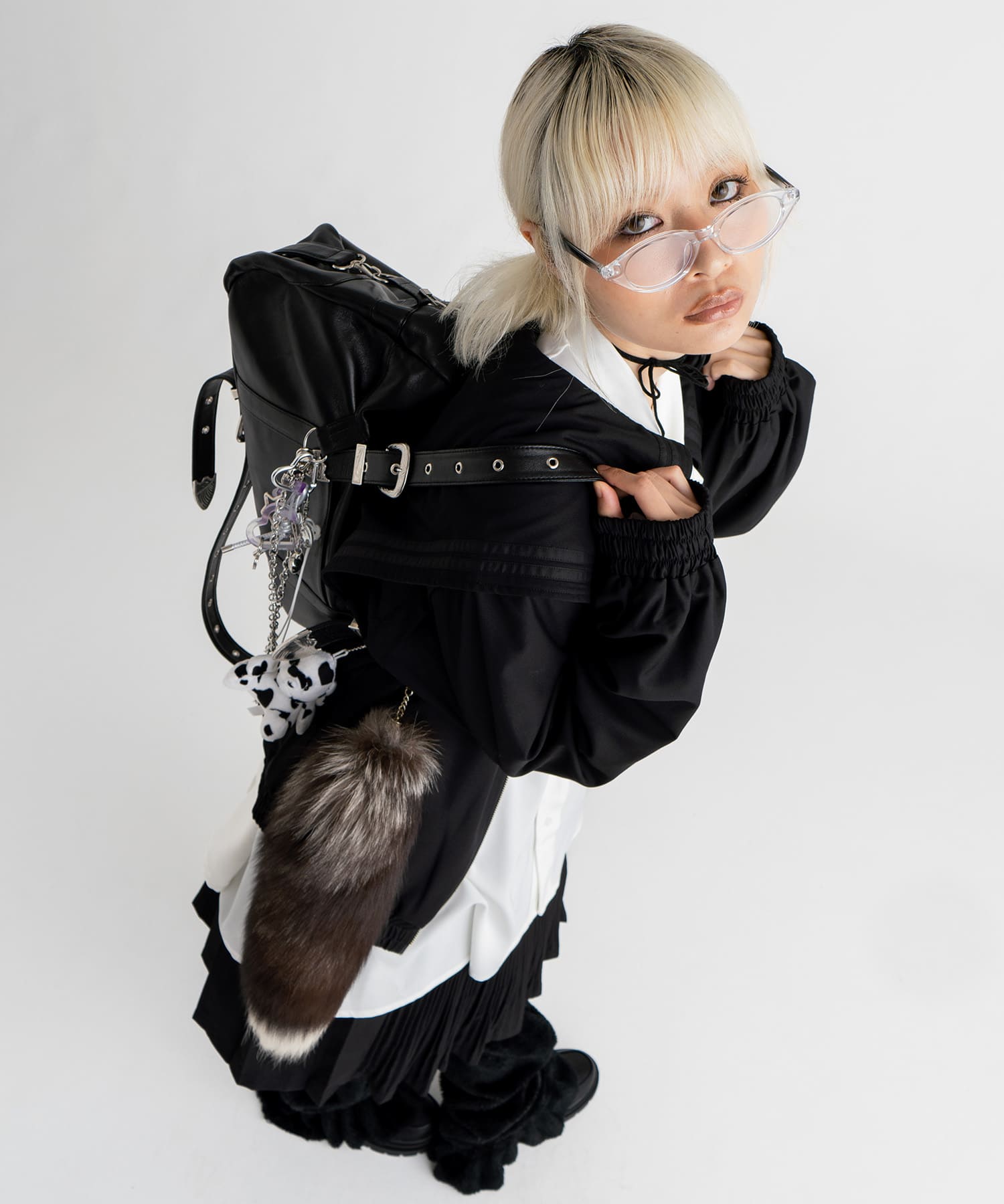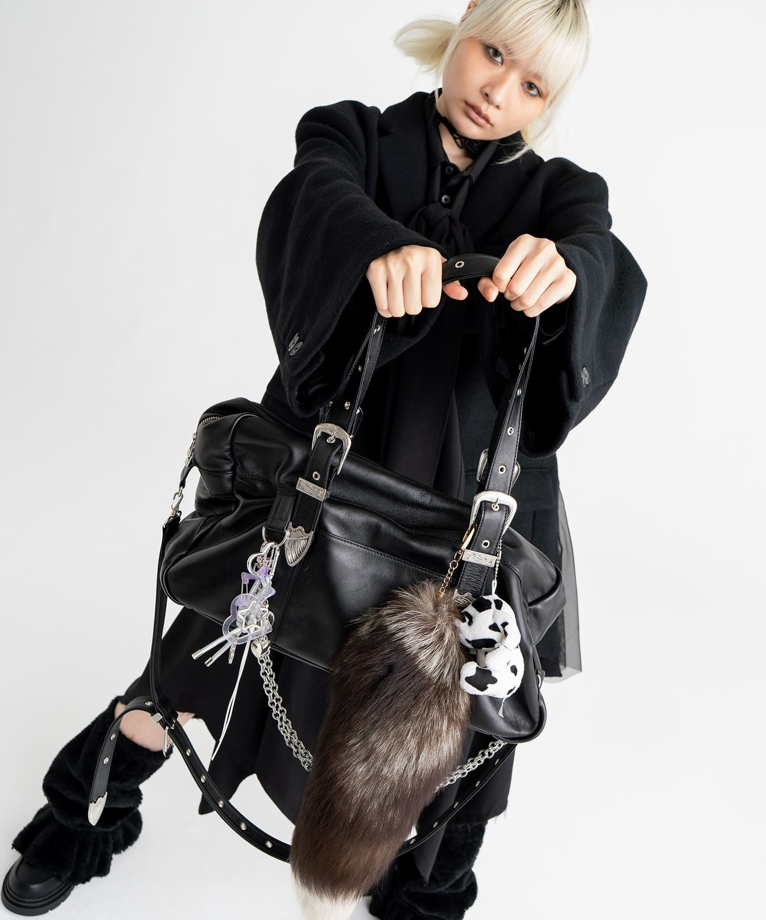 シーズンコンセプトのスクールテイストをなぞり学生鞄をイメージして製作したこのアイテムは、装飾感の強いバックルが特徴です。