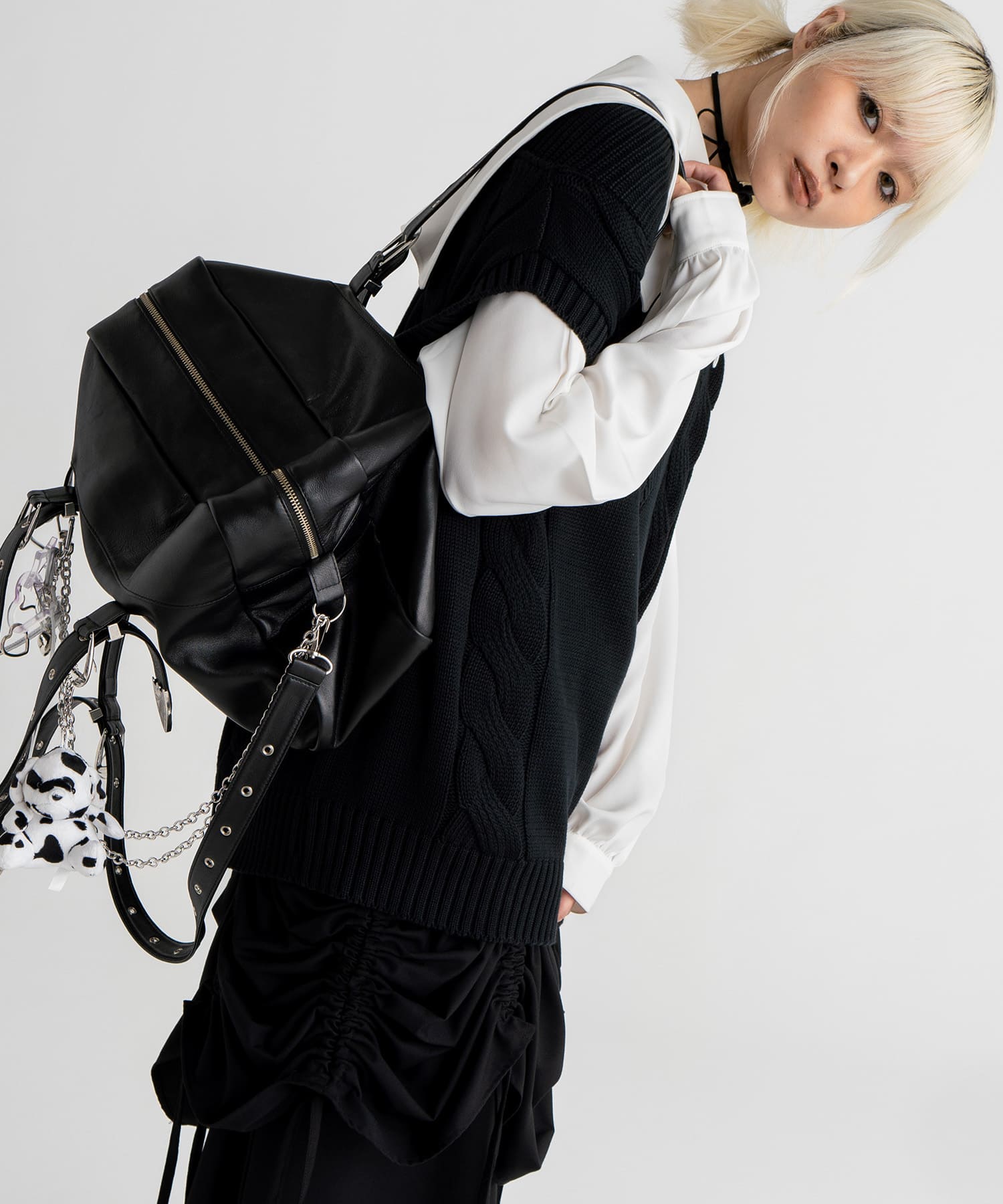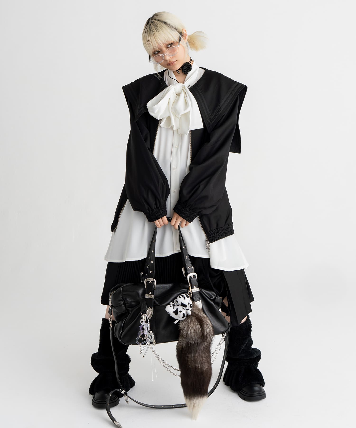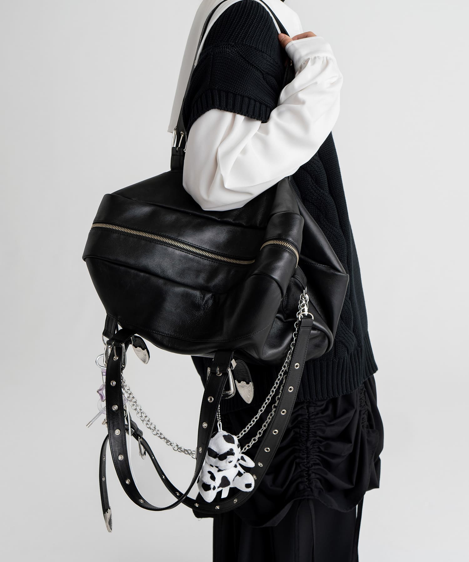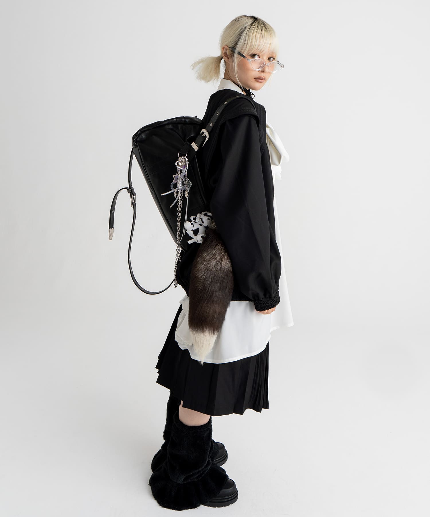 シーズンコンセプトのスクールテイストをなぞり学生鞄をイメージして製作したこのアイテムは、装飾感の強いバックルが特徴です。
